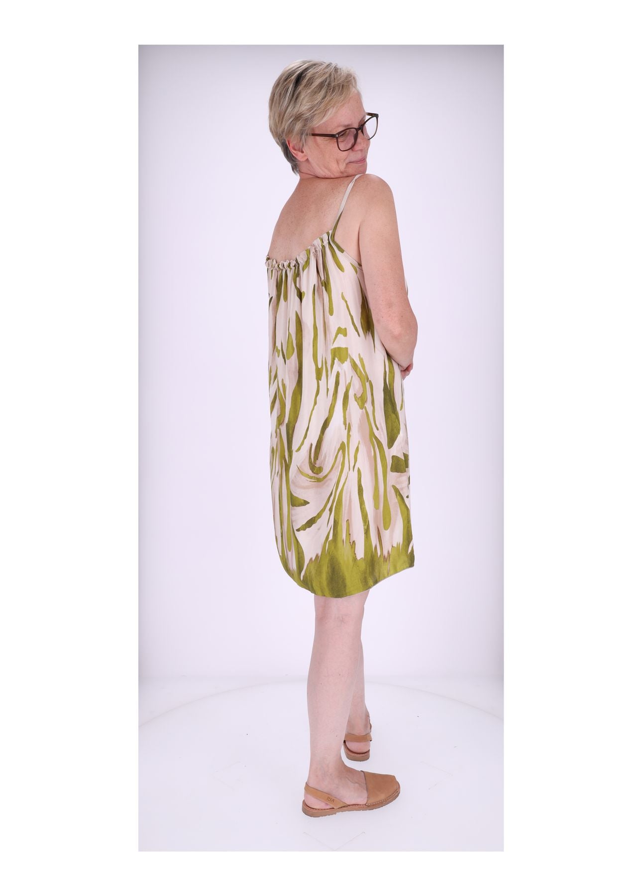 Aus einem elastischen Baumwoll-Elasthan-Mix gefertigt, trägt sich das Kleid besonders angenehm auf der Haut und passt sich sanft deinen Bewegungen an. Der luftige Schnitt macht es zum perfekten Begleiter für Citytrips, Urlaub oder Festivals.