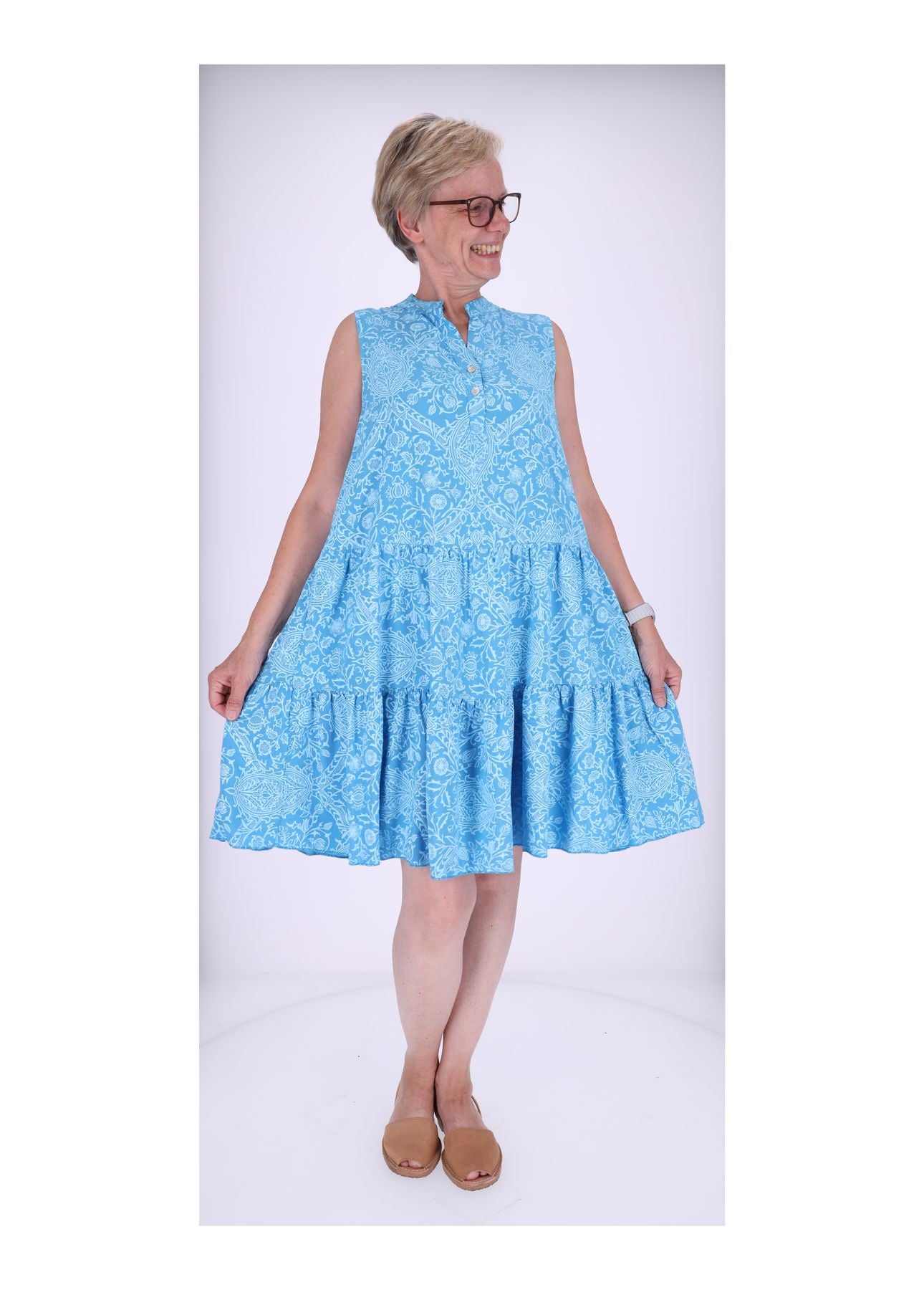 Mit seinen zwei großen, fließenden Stufen fällt dieses Kleid herrlich locker und bequem, sodass du dich den ganzen Tag frei und unbeschwert fühlst. Die Knopfleiste vom Hals bis zur Brust ist nicht nur ein charmantes Detail, sondern ermöglicht es dir auch, den Ausschnitt ganz nach Belieben anzupassen. Die knielange Passform ist super vielseitig und lädt zum Kombinieren ein.