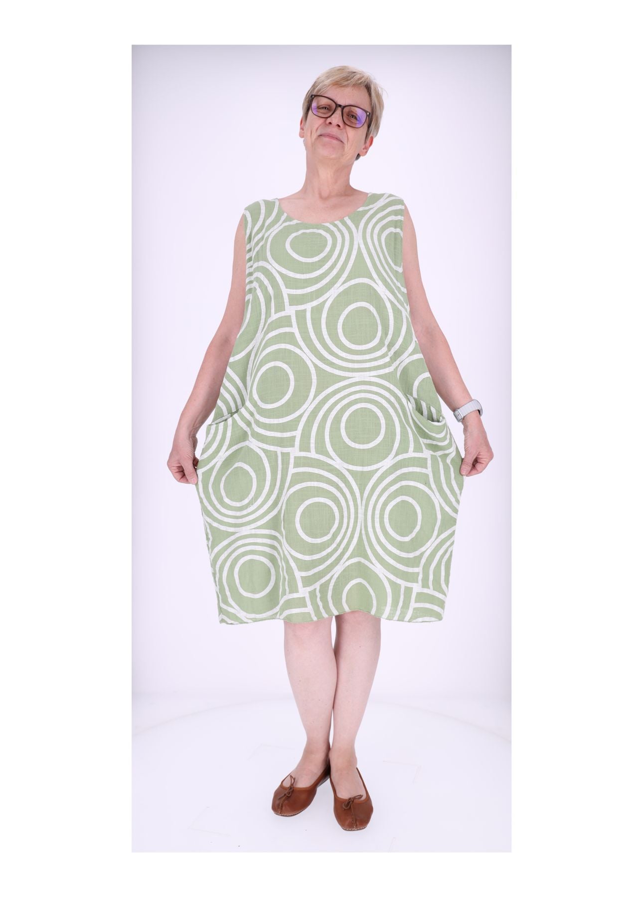 Sommerfeeling pur – luftiges Kleid aus Baumwolle & Leinen mit angesagtem Kreis-Print!