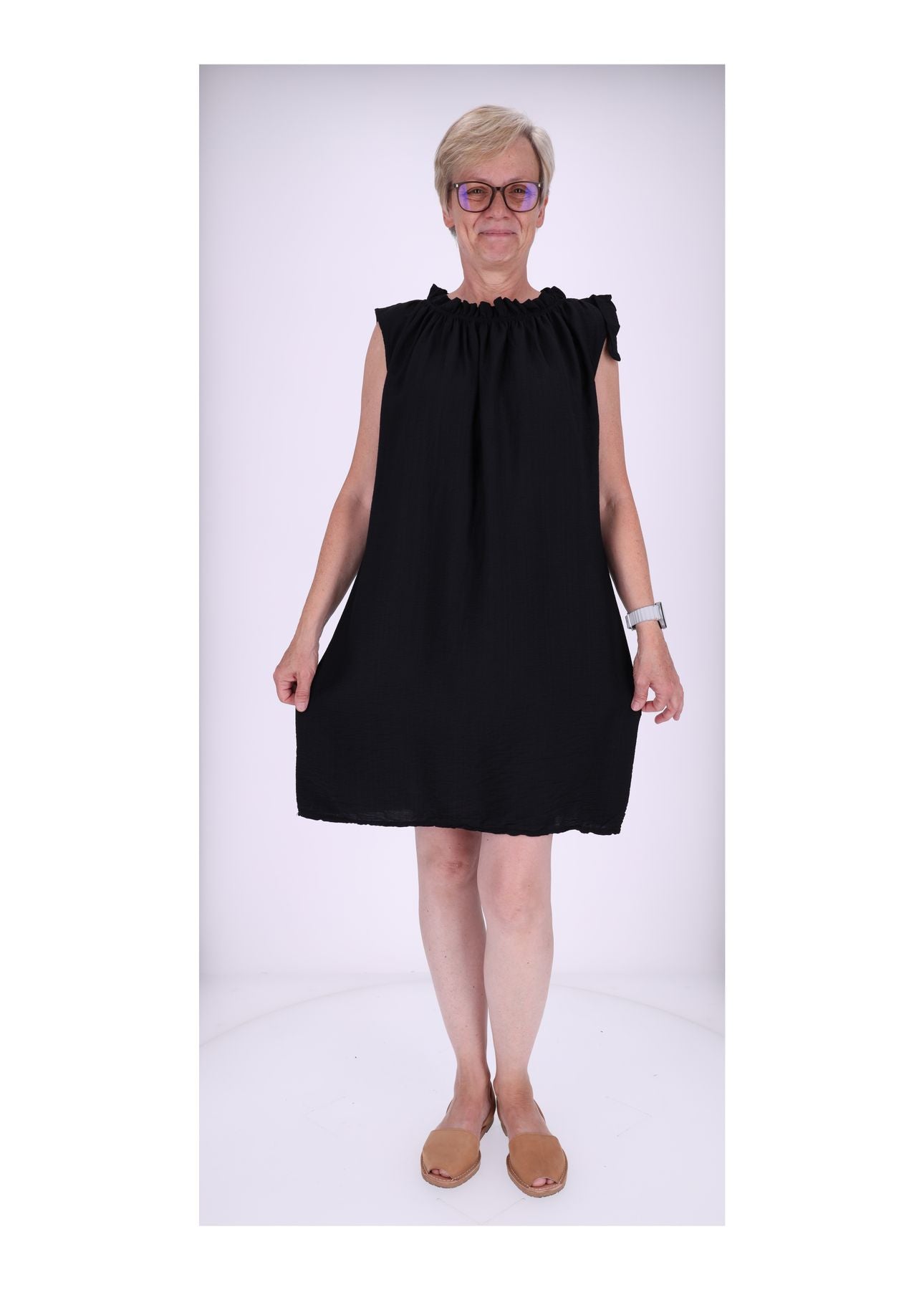 Kombiniere es mit filigranen Sandalen und Statement-Ohrringen für einen femininen Sommerlook. Für kühlere Stunden passt eine leichte Jeansjacke perfekt dazu.