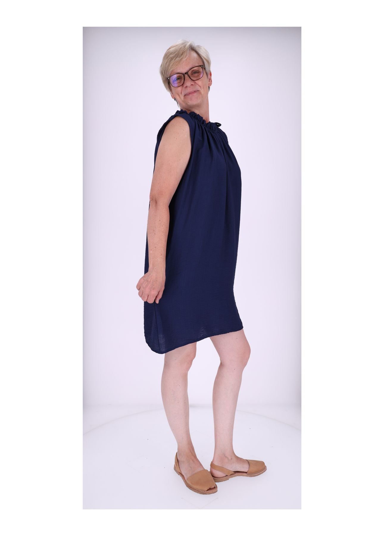 Die fließende Viskosequalität sorgt für ein weiches, angenehmes Tragegefühl und einen femininen Fall. Der knielange Schnitt und die figurschmeichelnde Silhouette machen dieses Kleid zum idealen Begleiter für heiße Tage – ob im Alltag, im Urlaub oder zu besonderen Anlässen.