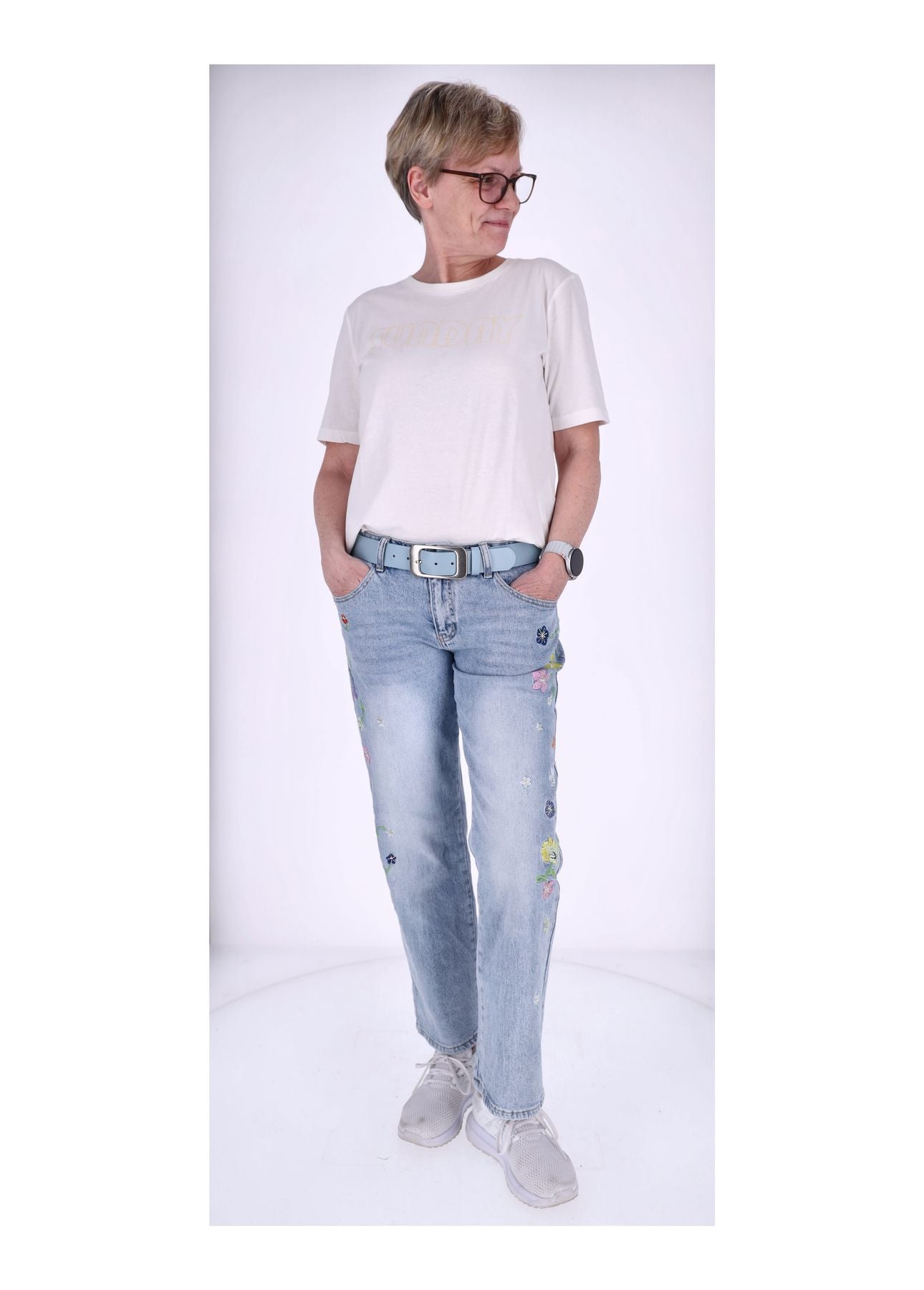 Damen Jeans „Blumen“ – Straight Leg mit Stickerei