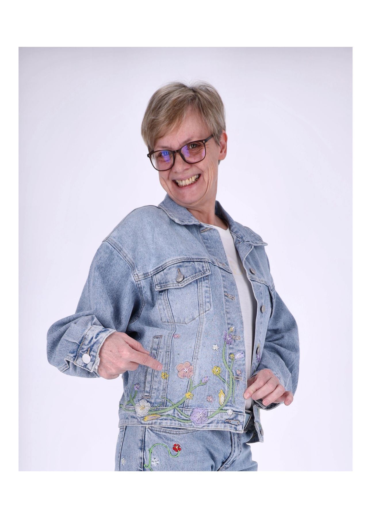 Damen Jeansjacke „Blumen & Strass“ – Trucker-Stil mit Stickerei
