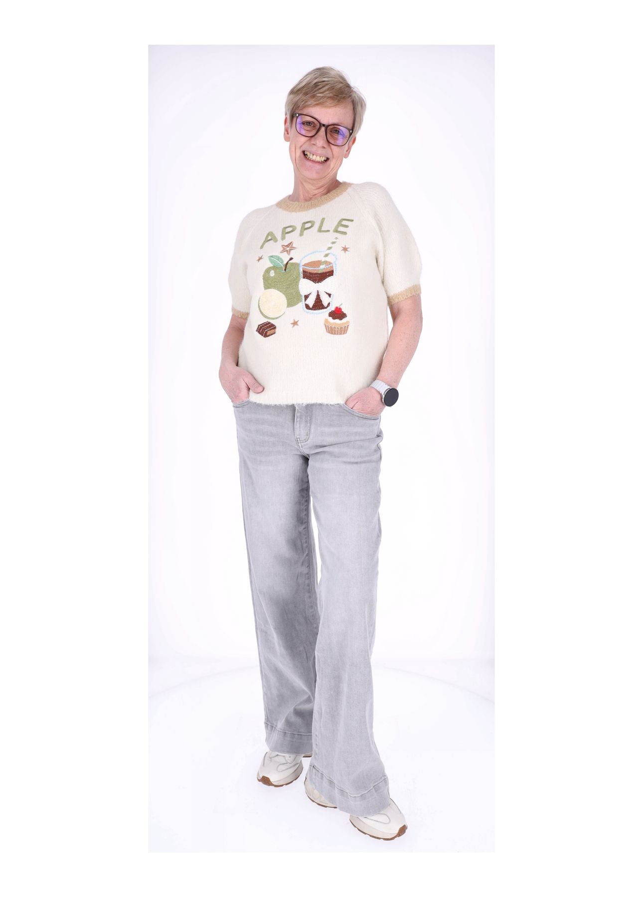 Damen Strick-T-Shirt – liebevolle Stickerei „APPLE“, süße Motivdetails