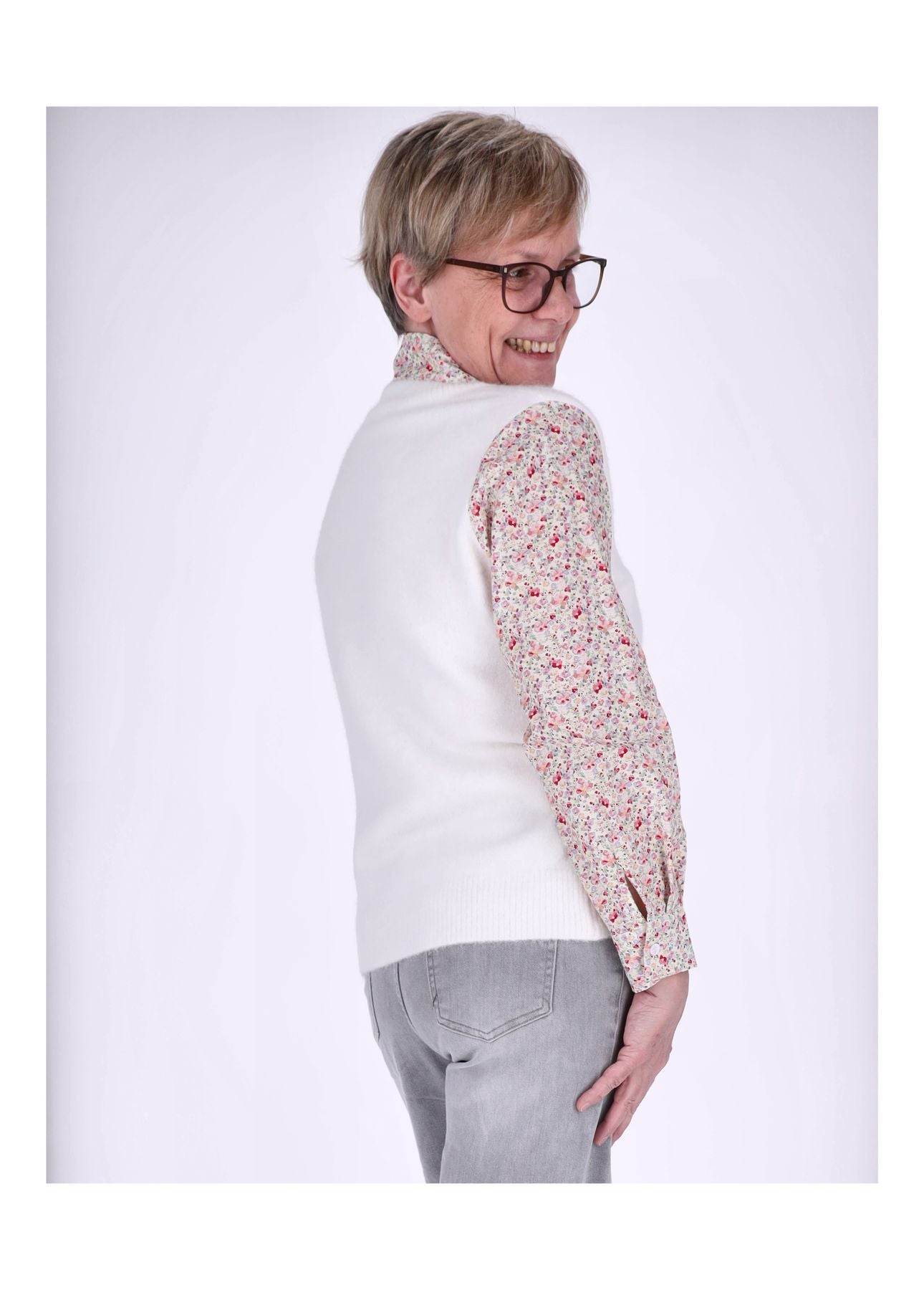 Strick Pullunder Damen mit Bluse unterlegt