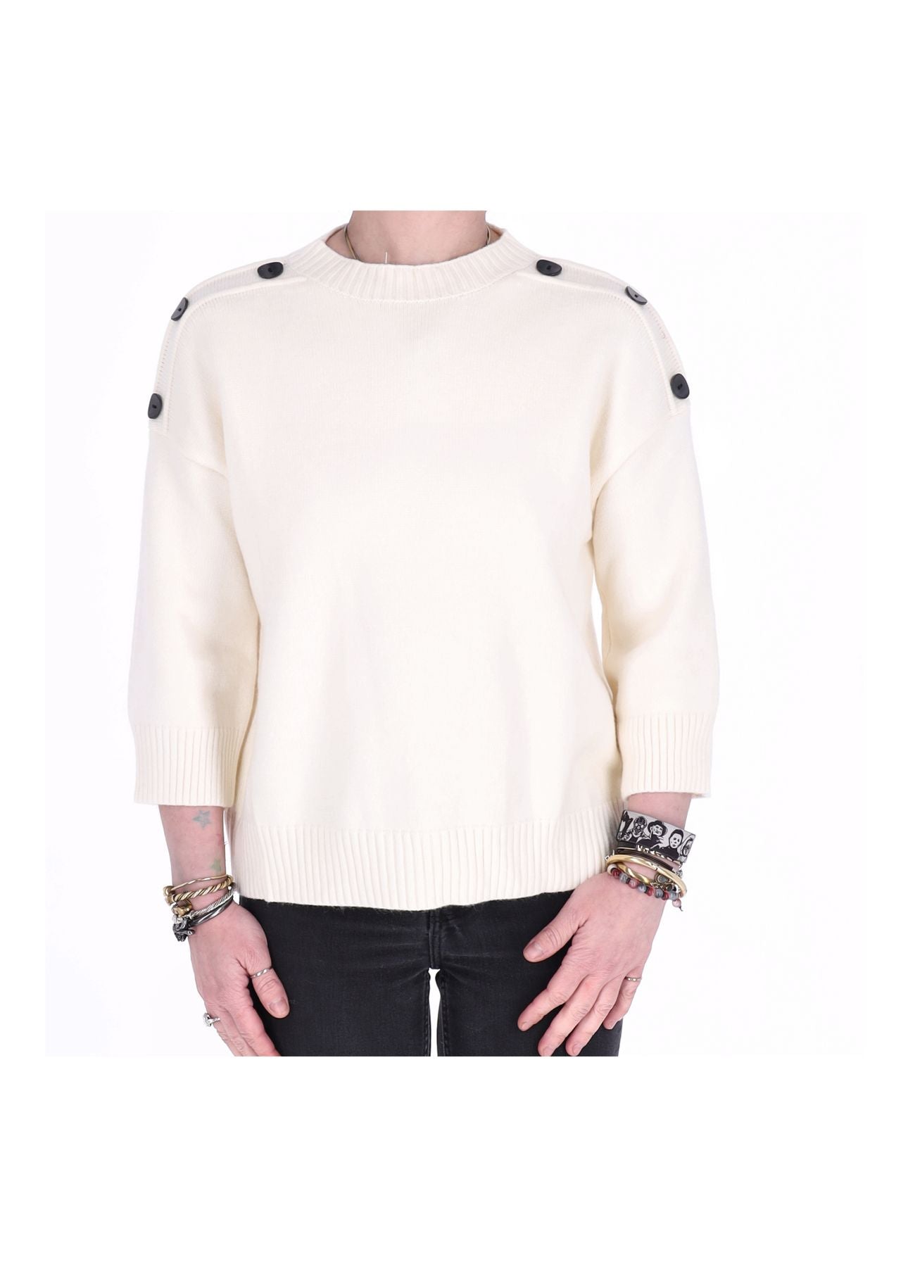 Strickpullover Damen mit 3/4-Arm und Schulterknöpfen – Dein eleganter Allrounder!