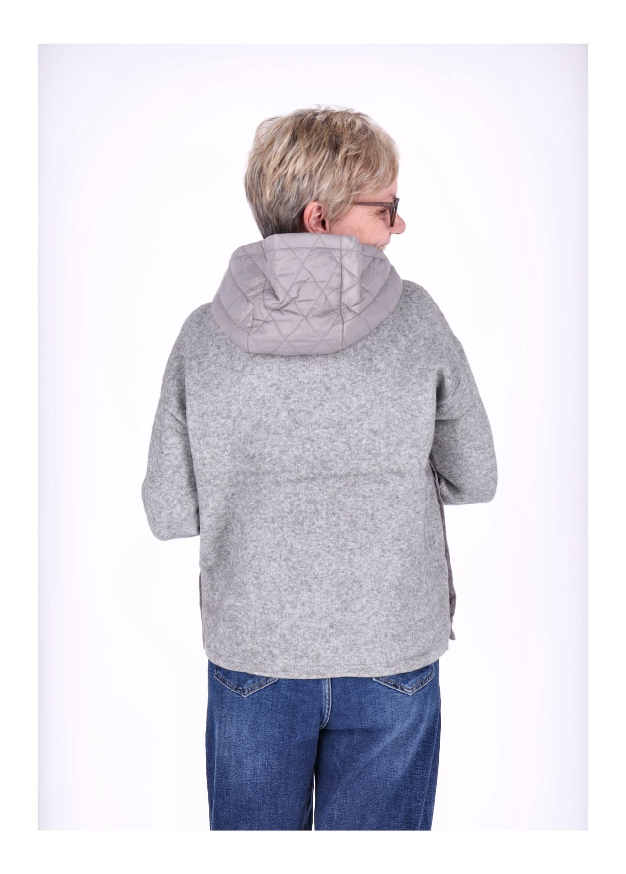 Strickpullover Damen Materialmix Kapuze