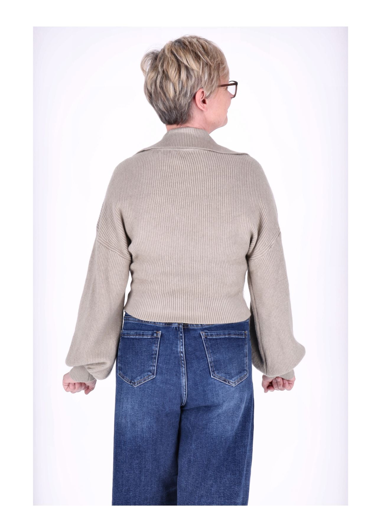Das Highlight: ein klassischer Polokragen kombiniert mit einem V-Ausschnitt vorne, der deinem Outfit sofort einen eleganten, femininen Touch verleiht. Der Pullover lässt sich vielseitig kombinieren und passt perfekt zu Jeans, Röcken oder Stoffhosen.