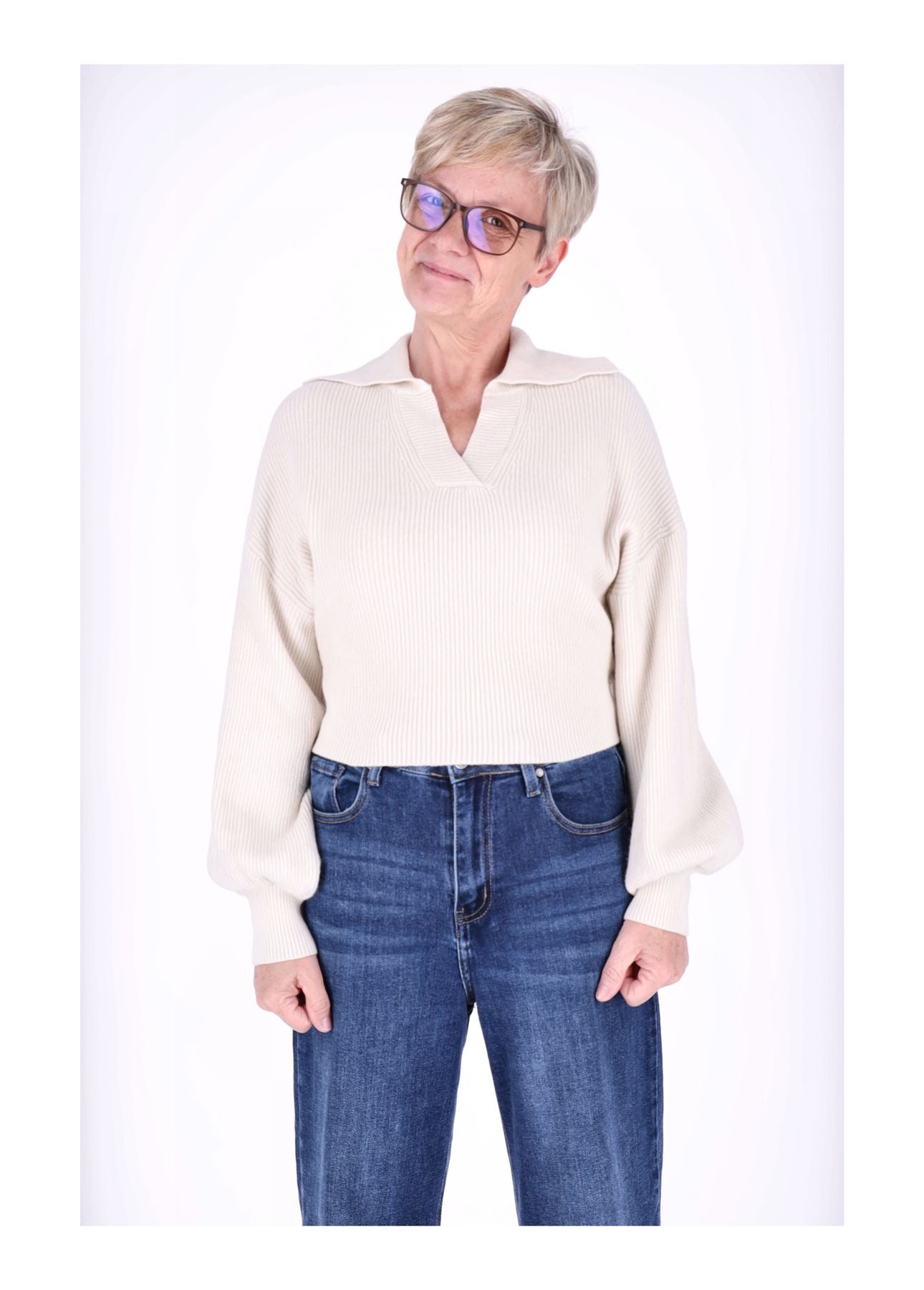 Das Highlight: ein klassischer Polokragen kombiniert mit einem V-Ausschnitt vorne, der deinem Outfit sofort einen eleganten, femininen Touch verleiht. Der Pullover lässt sich vielseitig kombinieren und passt perfekt zu Jeans, Röcken oder Stoffhosen.