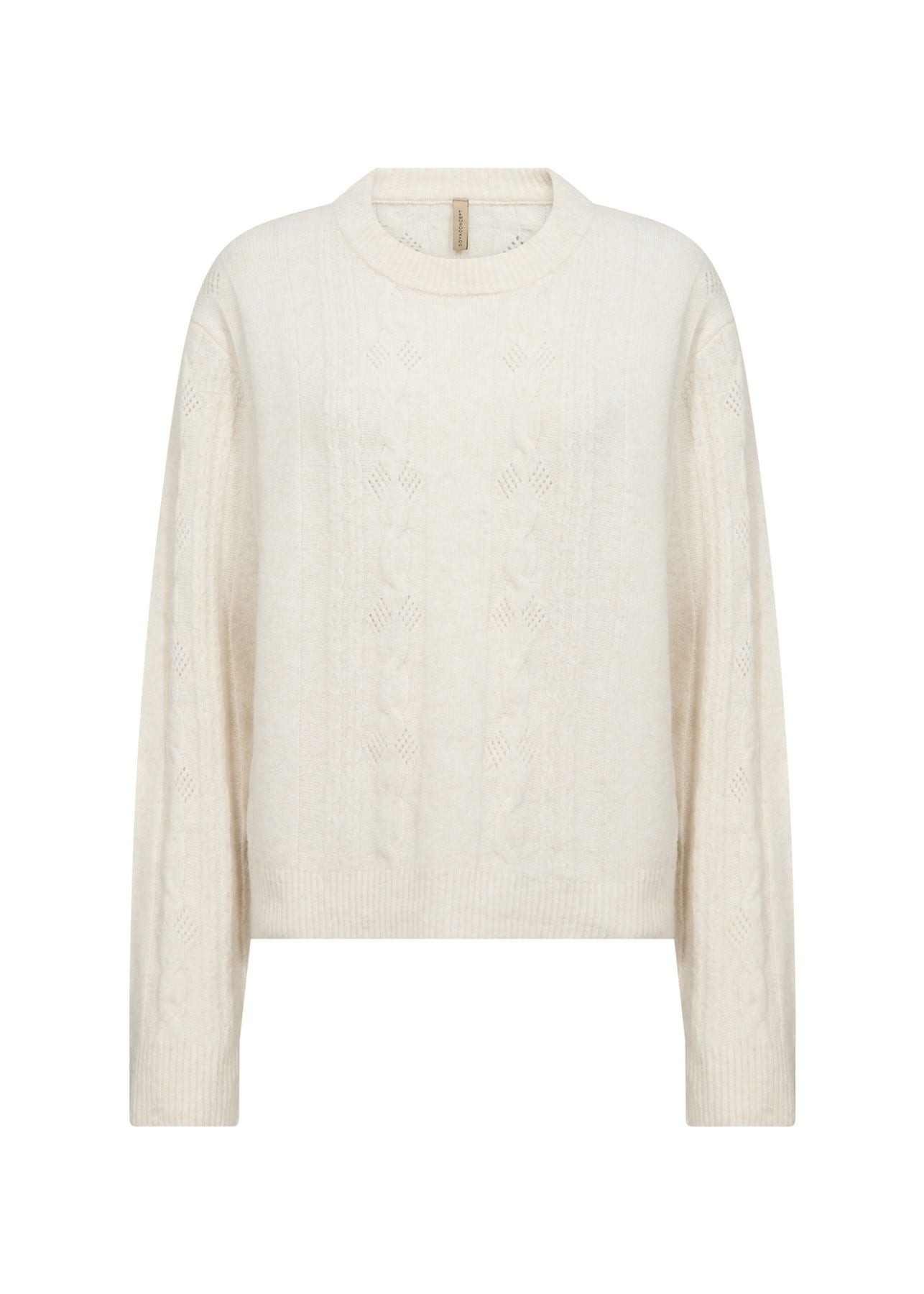 SC-VIKI 1 ist ein Pullover aus 50% recyceltem Polyester, 33% Polyester, 8% Nylon, 6% Wolle und 3% Elastan. Er hat ein Zopfmuster, Rippbündchen und einen Rundhalsausschnitt. Kombiniere ihn mit Denim oder maßgeschneiderten Hosen für ein bequemes Outfit.
