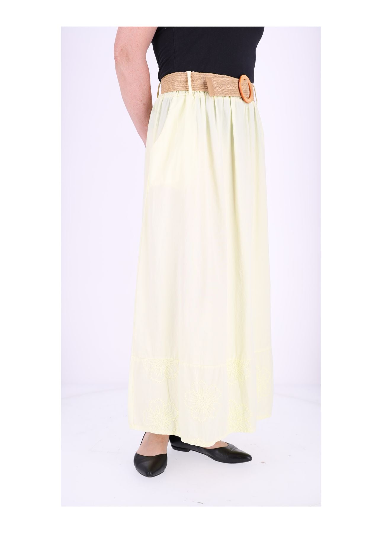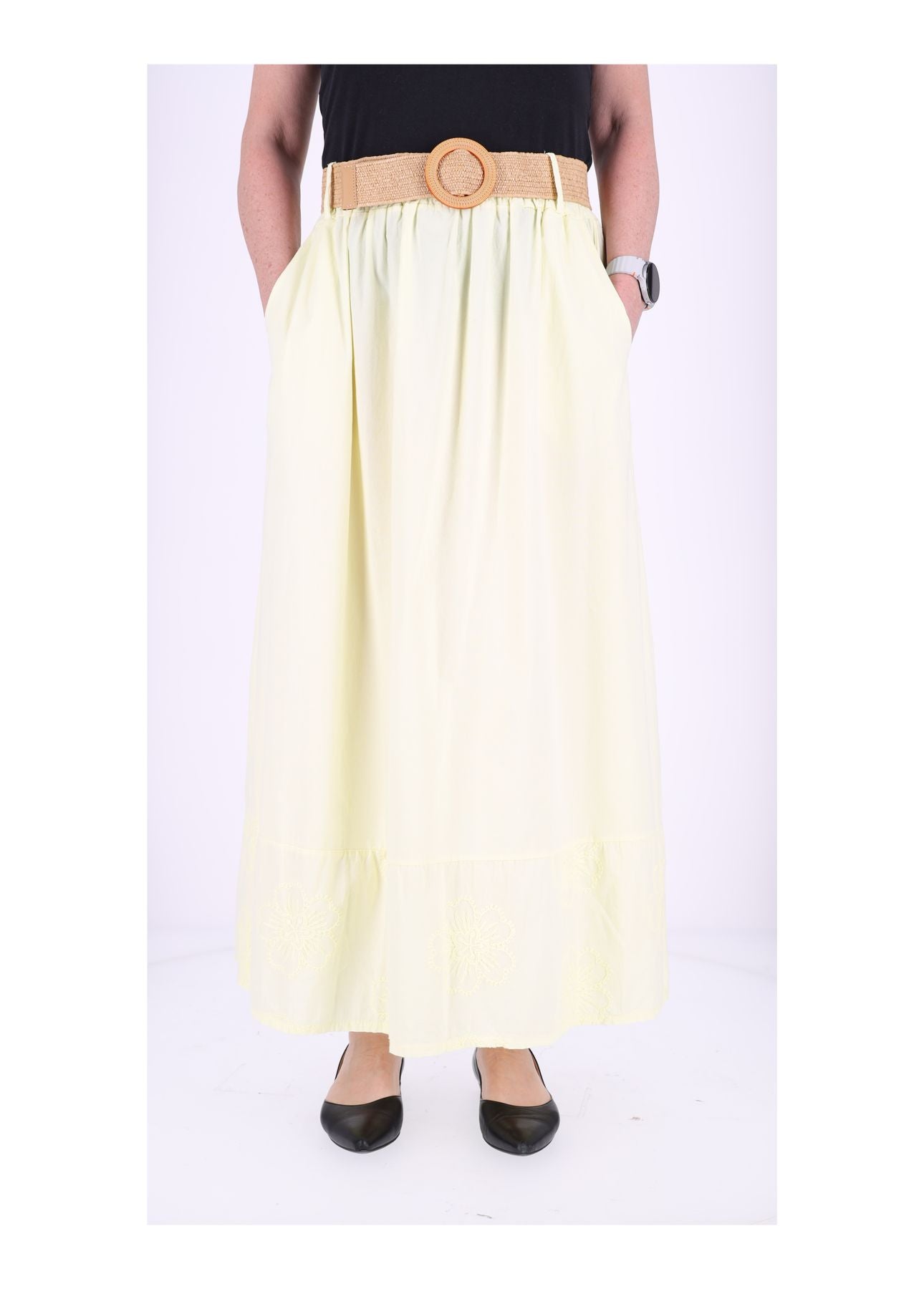 Damen Stufenrock aus Baumwolle mit Stickerei und Einschubtaschen