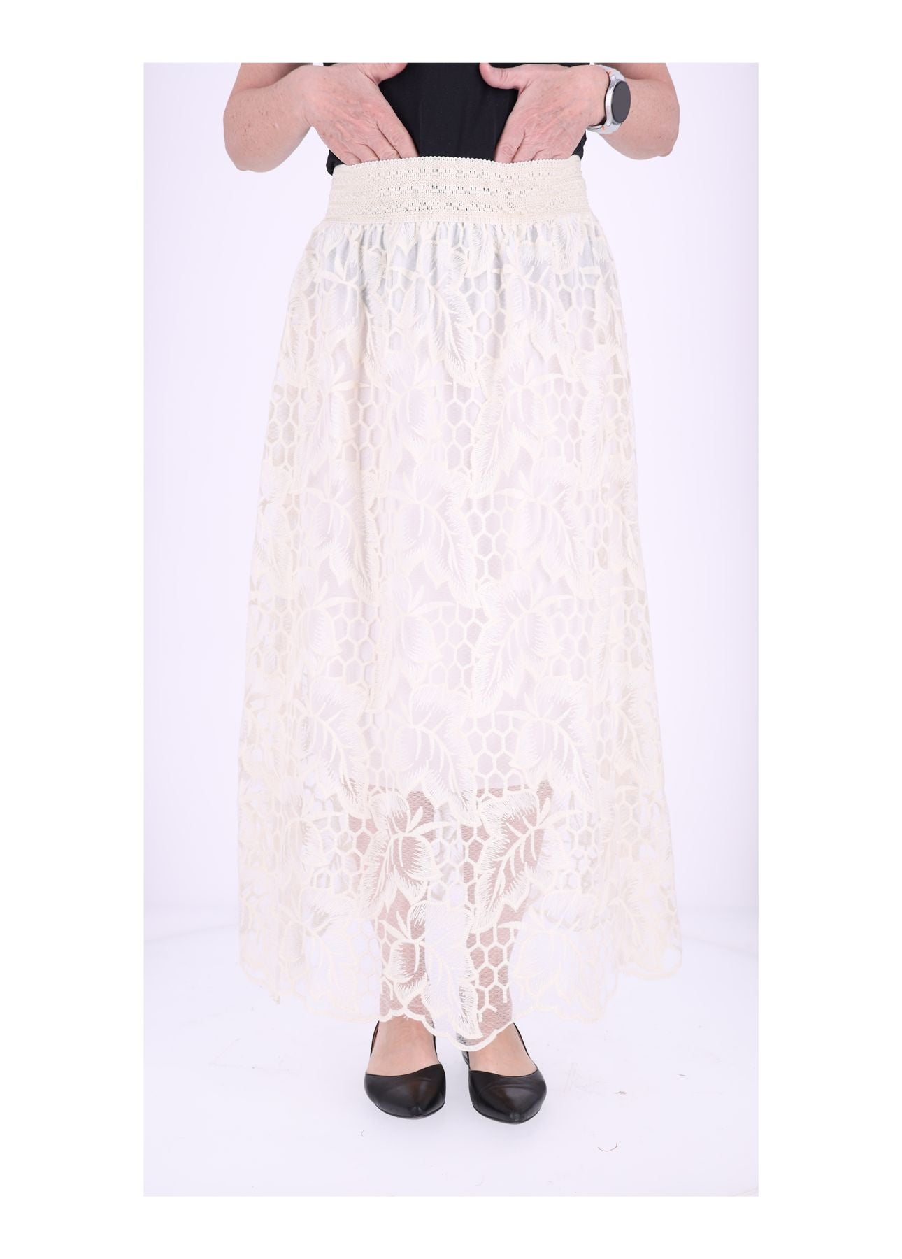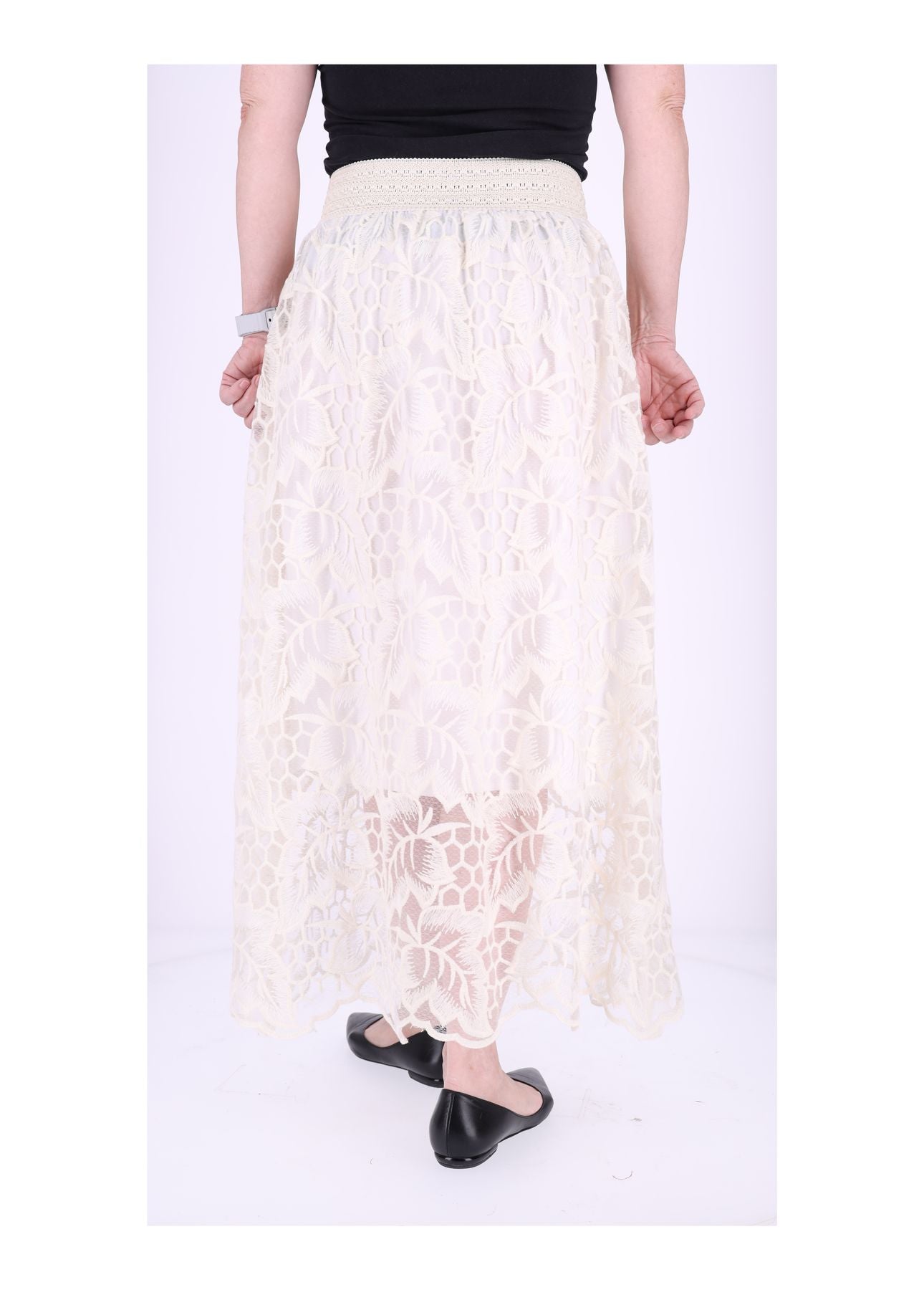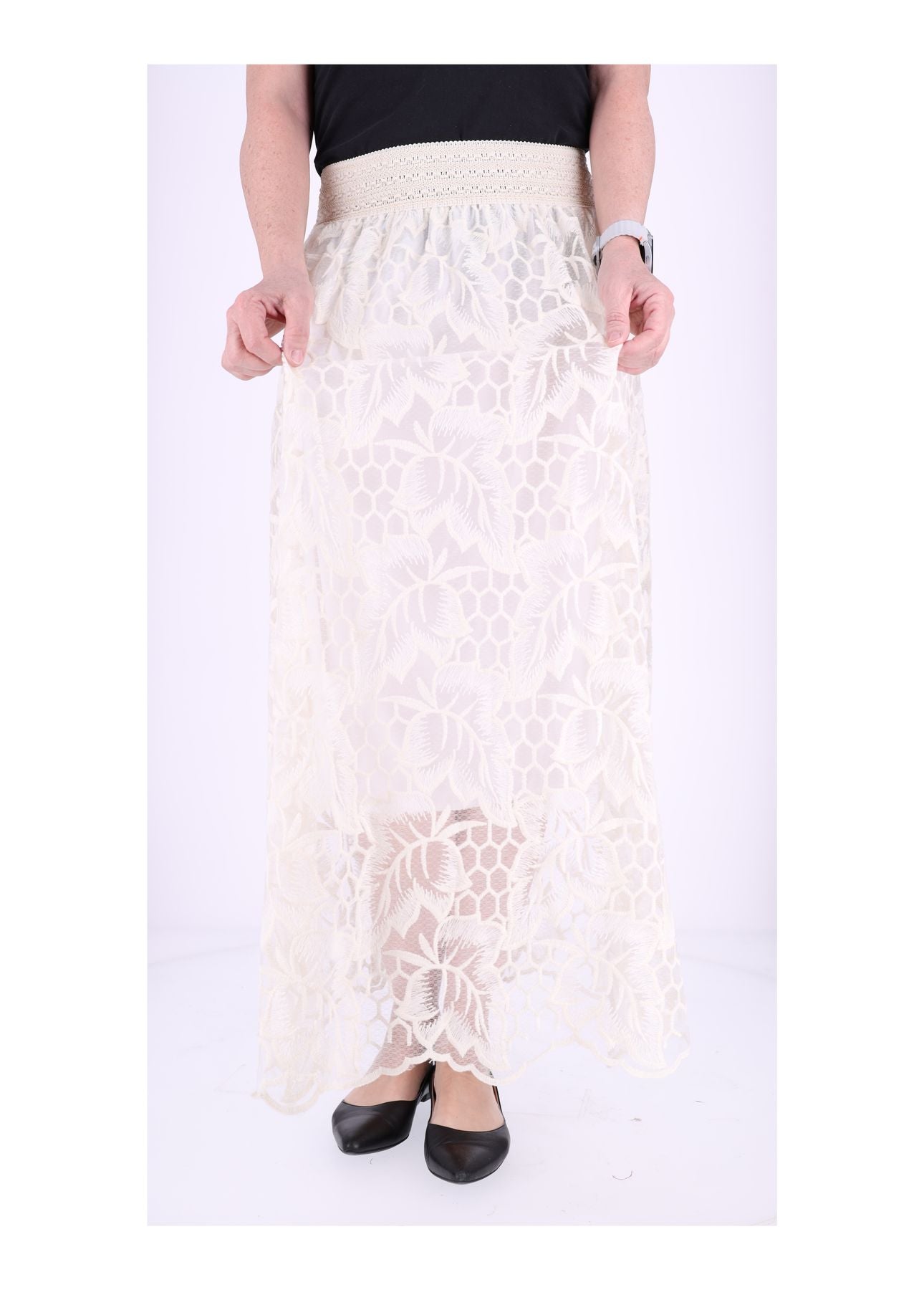 Maxi Tüllrock für Damen mit Allover-Blattstickerei, Zierbund & Gummizug – One Size, Boho-Chic zum Verlieben