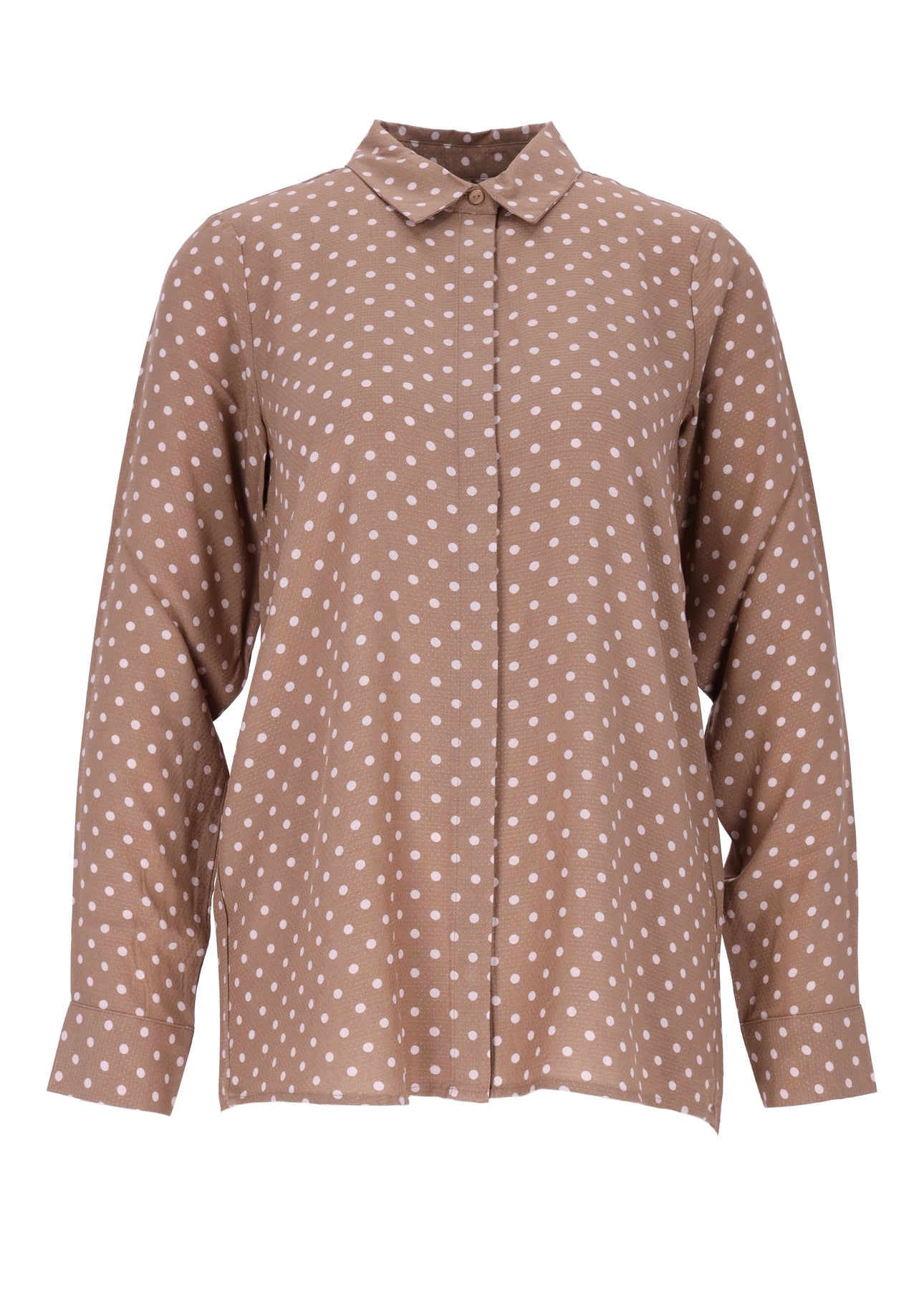 SC-FATOU kreiert mit diesem Hemd aus 100 % ECOVERO-Viskose eine elegante Interpretation klassischer Schneiderkunst. Es verfügt über eine Knopfleiste, einen regulären Kragen, lange Ärmel und einen Allover-Punktdruck. Dieses Hemd passt perfekt zu maßgeschneiderten Hosen oder Jeans für einen eleganten, aber entspannten Look.