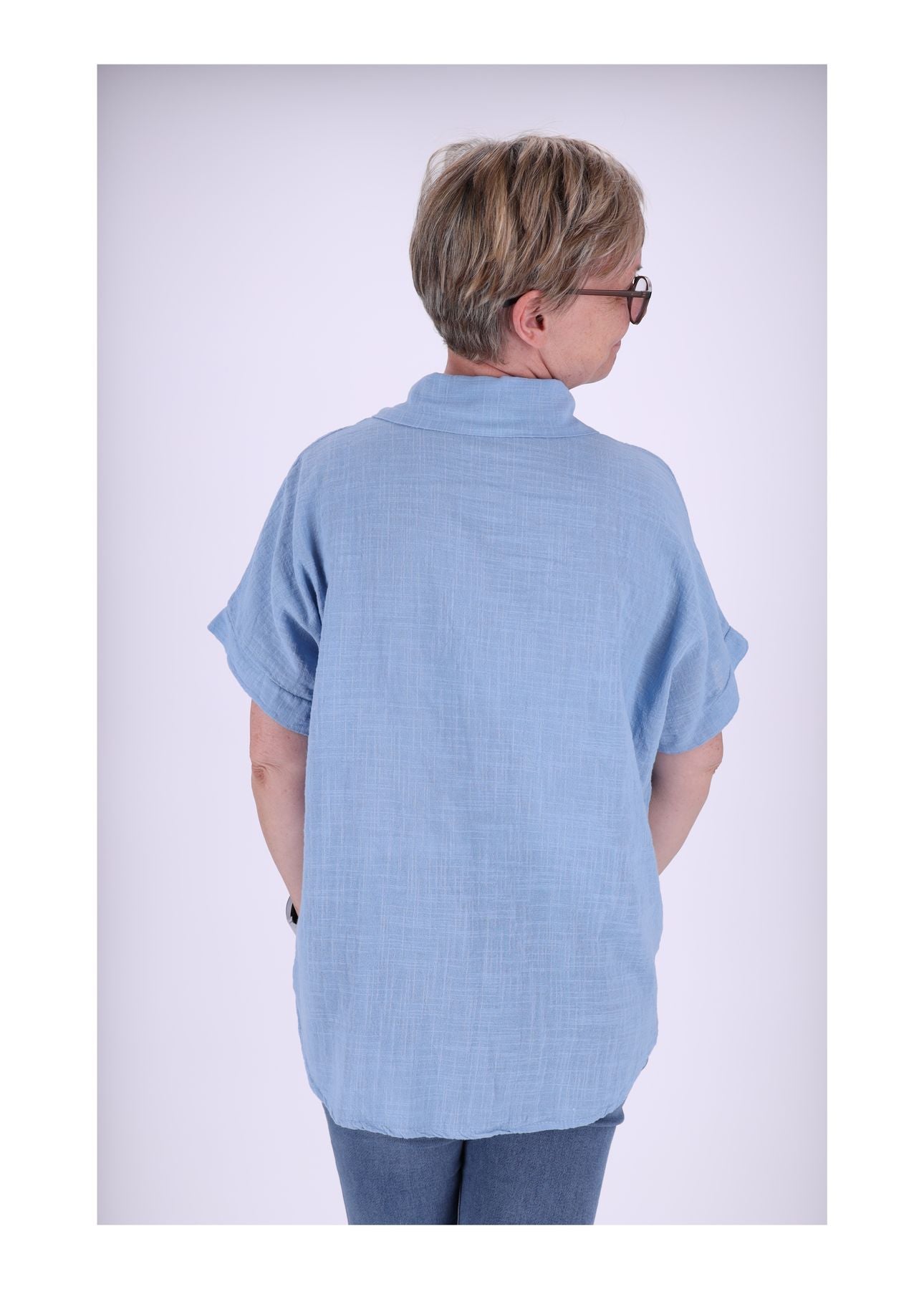 Styling-Tipp: Trage sie locker über der Hose oder leicht eingesteckt für einen entspannten Sommer-Look mit natürlichem Chic.