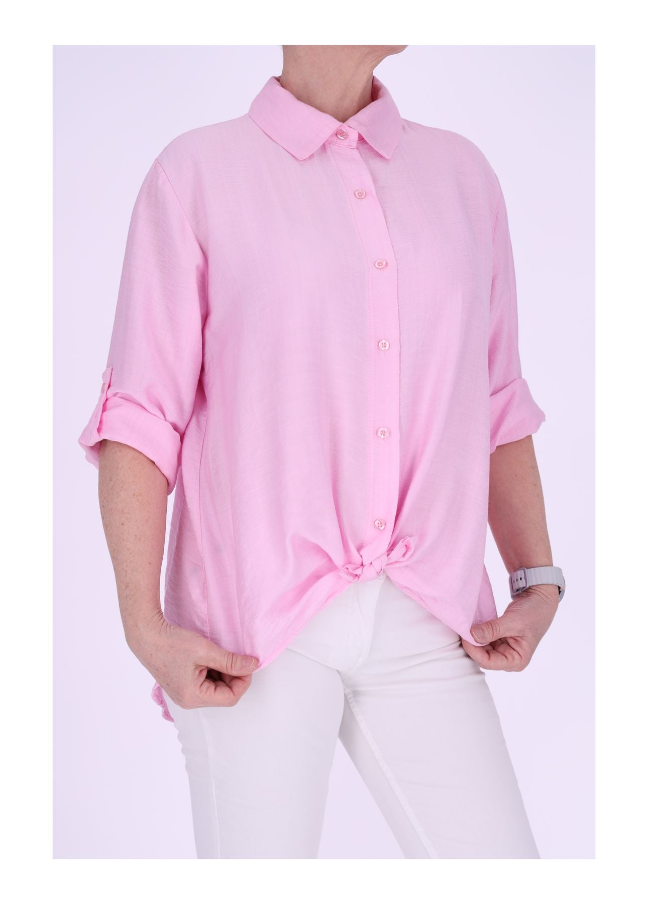 Diese stilvolle Damen Bluse überzeugt mit ihrer leicht strukturierten Stoffqualität und angenehmem Tragekomfort. Die langen Ärmel lassen sich ganz nach Belieben krempeln und fixieren – ideal für einen lässigen Look.