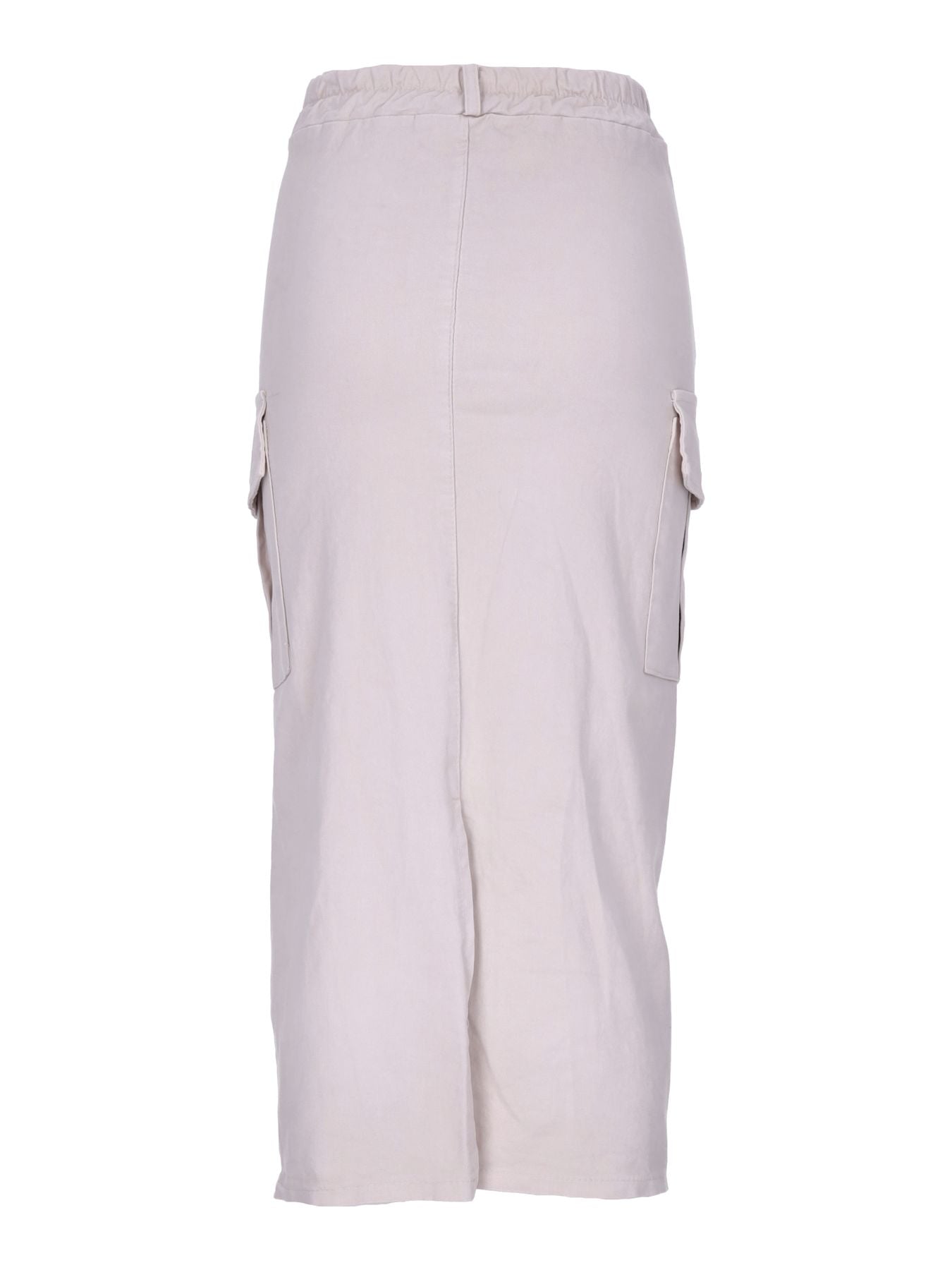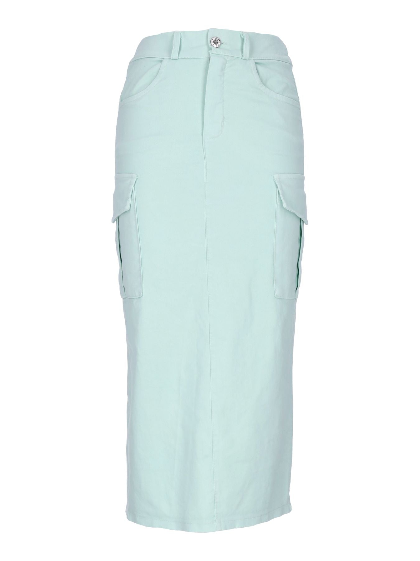 Mit seinem trendigen Design und den praktischen Details wird dieser Rock schnell zu Ihrem Lieblingsstück für verschiedene Anlässe. Die Cargotaschen verleihen diesem Rock eine lässige Note und bieten praktischen Stauraum für kleine Essentials. Sie verleihen dem Rock eine moderne Ästhetik und setzen modische Akzente. Der Schlitz mittig hinten sorgt für Bewegungsfreiheit und verleiht dem Rock eine elegante Note. Er betont Ihre Silhouette und verleiht Ihrem Look eine subtile Raffinesse. Der Knopf und Reißverschluss bieten eine sichere Passform und ermöglichen ein einfaches An- und Ausziehen. Dieser vielseitige Rock ist die perfekte Wahl für verschiedene Anlässe. Tragen Sie ihn im Büro, bei einem Treffen mit Freunden oder bei einem entspannten Wochenendausflug und setzen Sie ein modisches Statement.