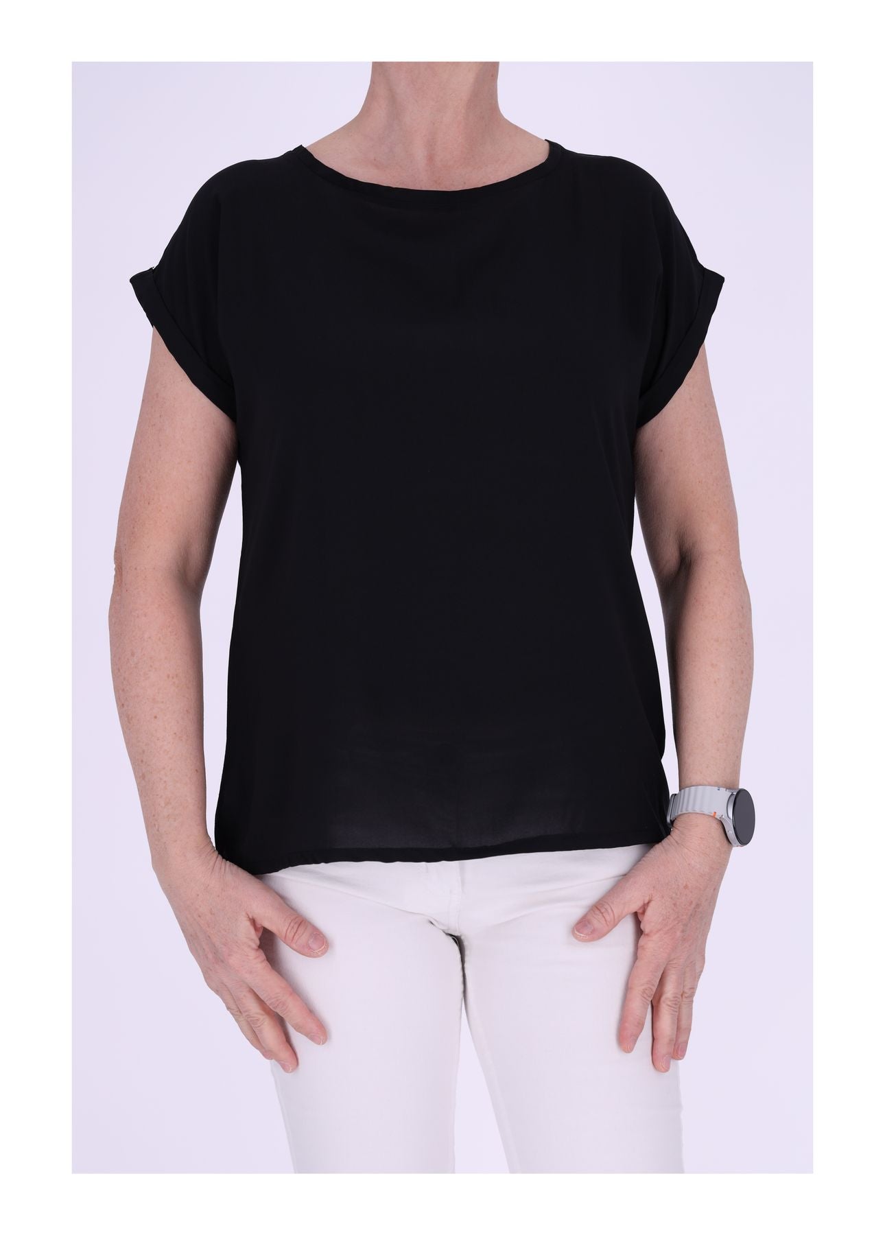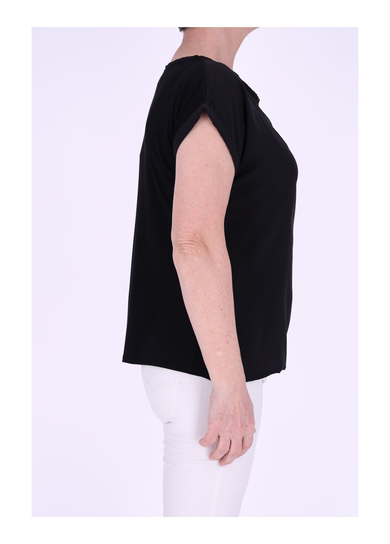 Das weich fallende Damen-Shirt begeistert mit seinem fließenden Stoff und einer eleganten Silhouette. Die geteilte Rückennaht setzt einen dezenten, stilvollen Akzent und verleiht dem Shirt eine besondere Note.