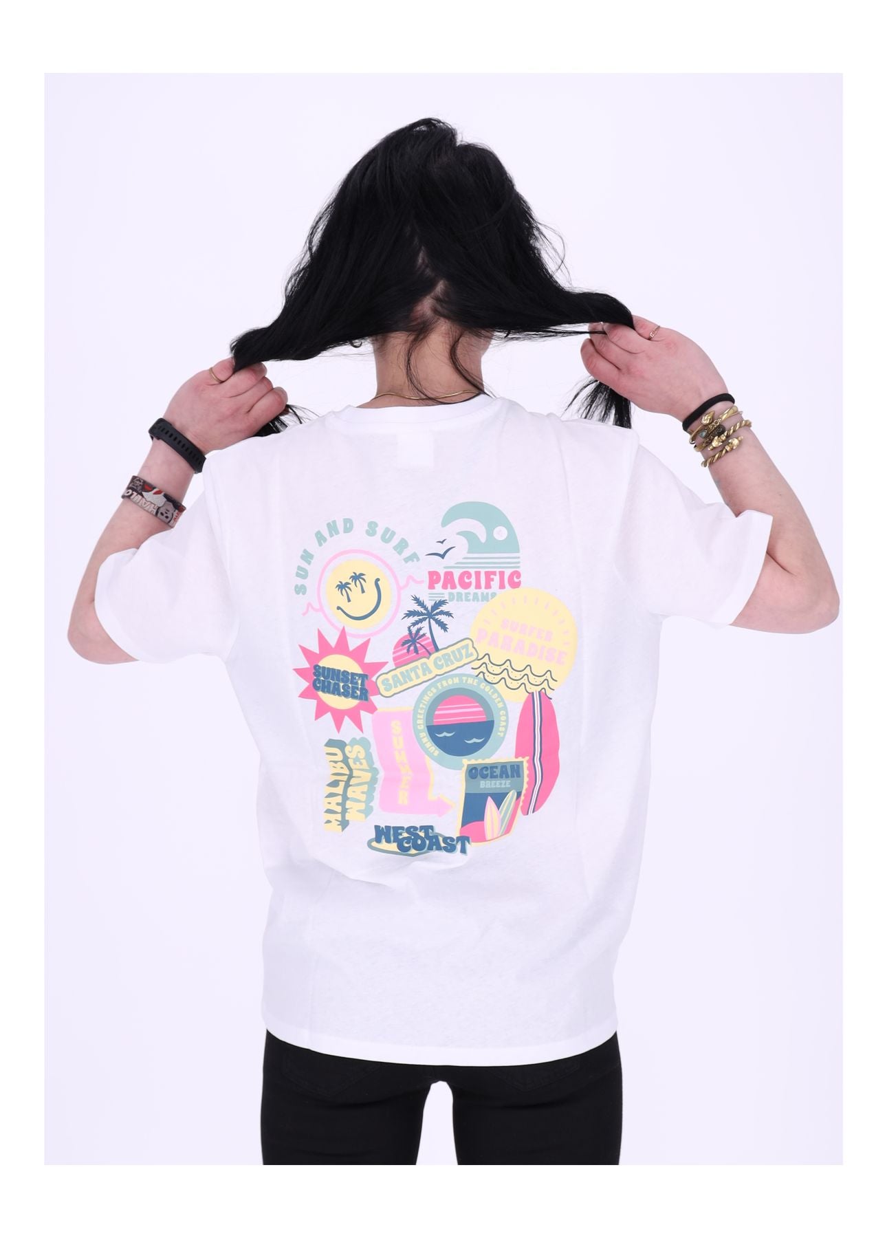 Großer Rückenprint: „BEACH“ & „FLOWER POWER“