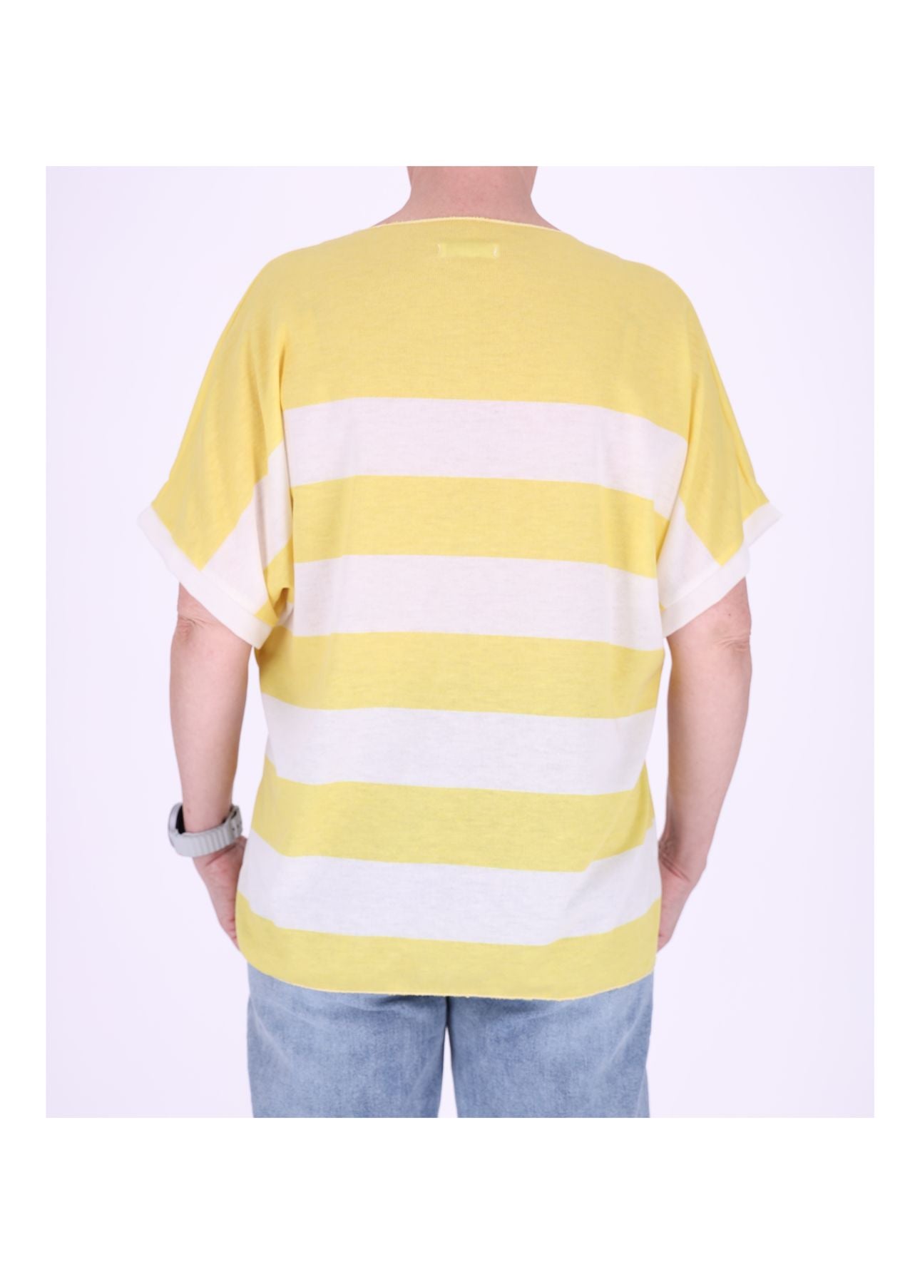 Damen T-Shirt mit Blockstreifen, V-Ausschnitt & leichtem Feinstrick – One Size, ideal für den Sommer