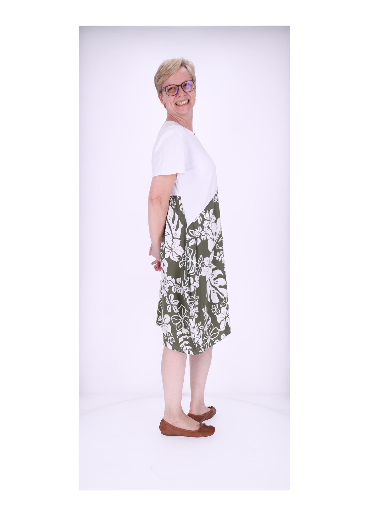 Dieses Damen Sommerkleid begeistert mit einem lebendigen Blumenprint und sorgt für einen frischen, femininen Look. Der wahre Hingucker ist die farblich abgesetzte, aufgenähte Tasche, die dem Kleid eine moderne und verspielte Note verleiht. Die Einschubtaschen bieten zusätzlich praktischen Stauraum und runden das Design perfekt ab. Leicht und luftig, ist dieses Kleid ideal für sonnige Tage – ein stilvoller Begleiter für den Alltag, das Wochenende oder den nächsten Sommerurlaub.