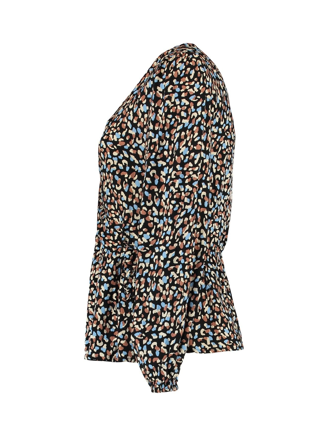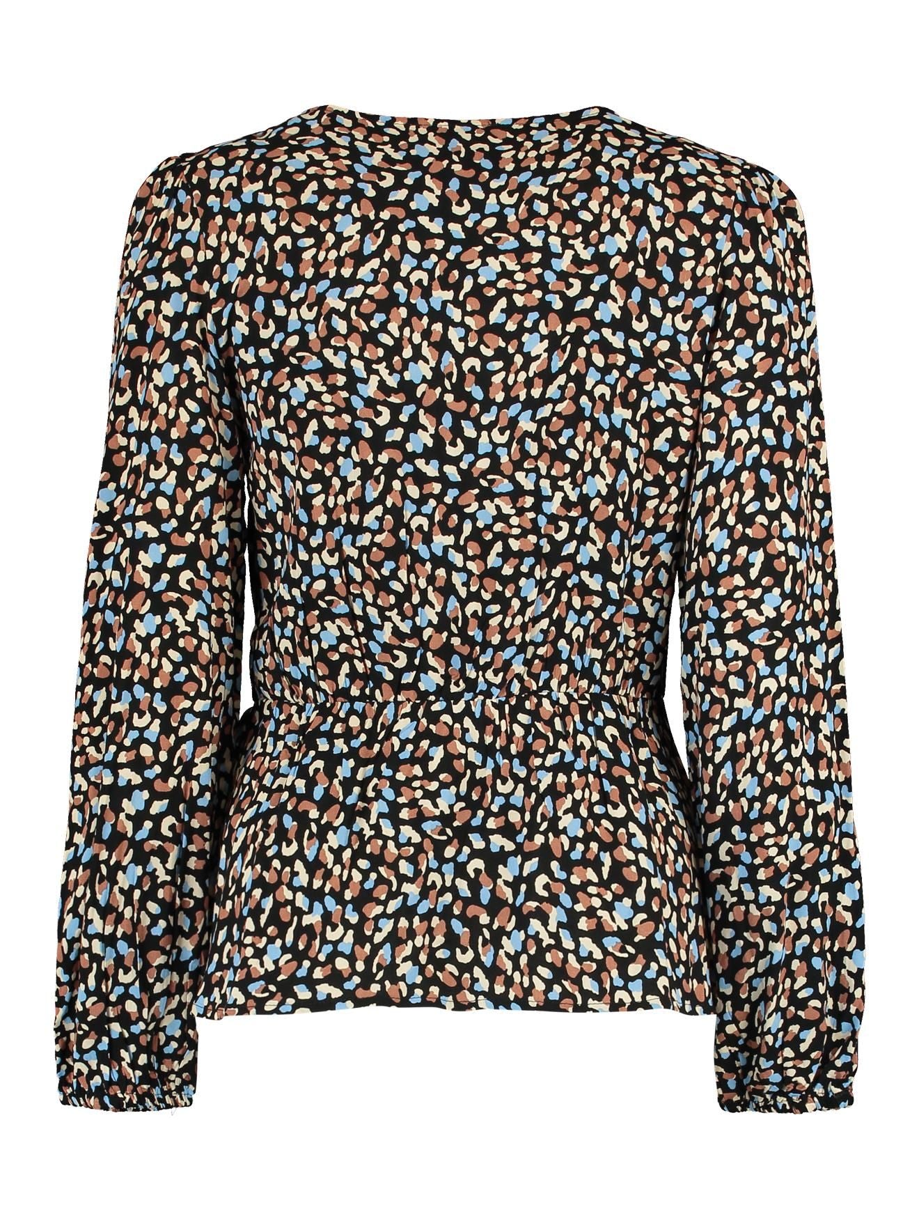 Bluse in Wickeloptik, V-Neck, Langarm, bedruckte Ware Farbe