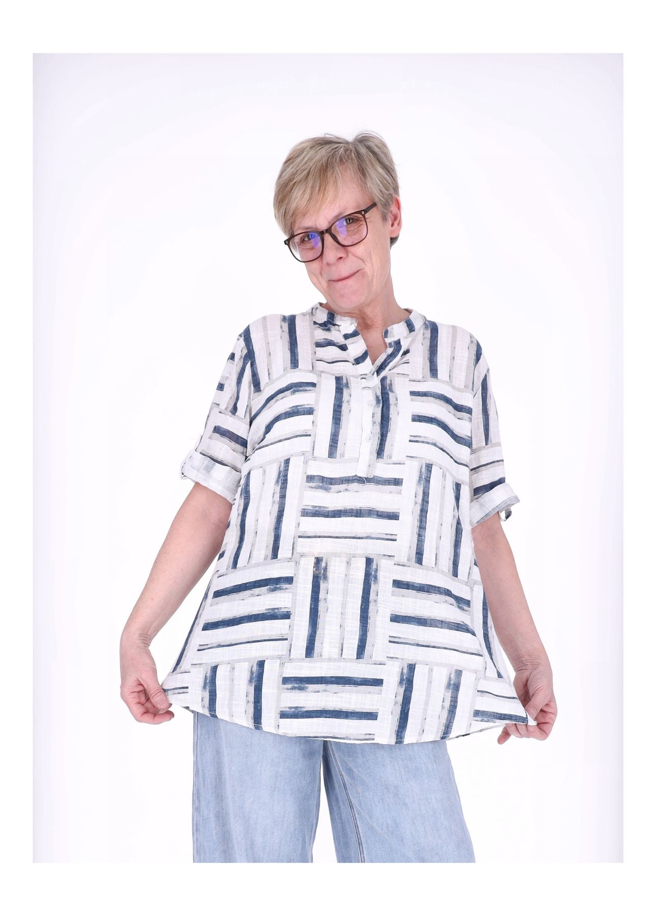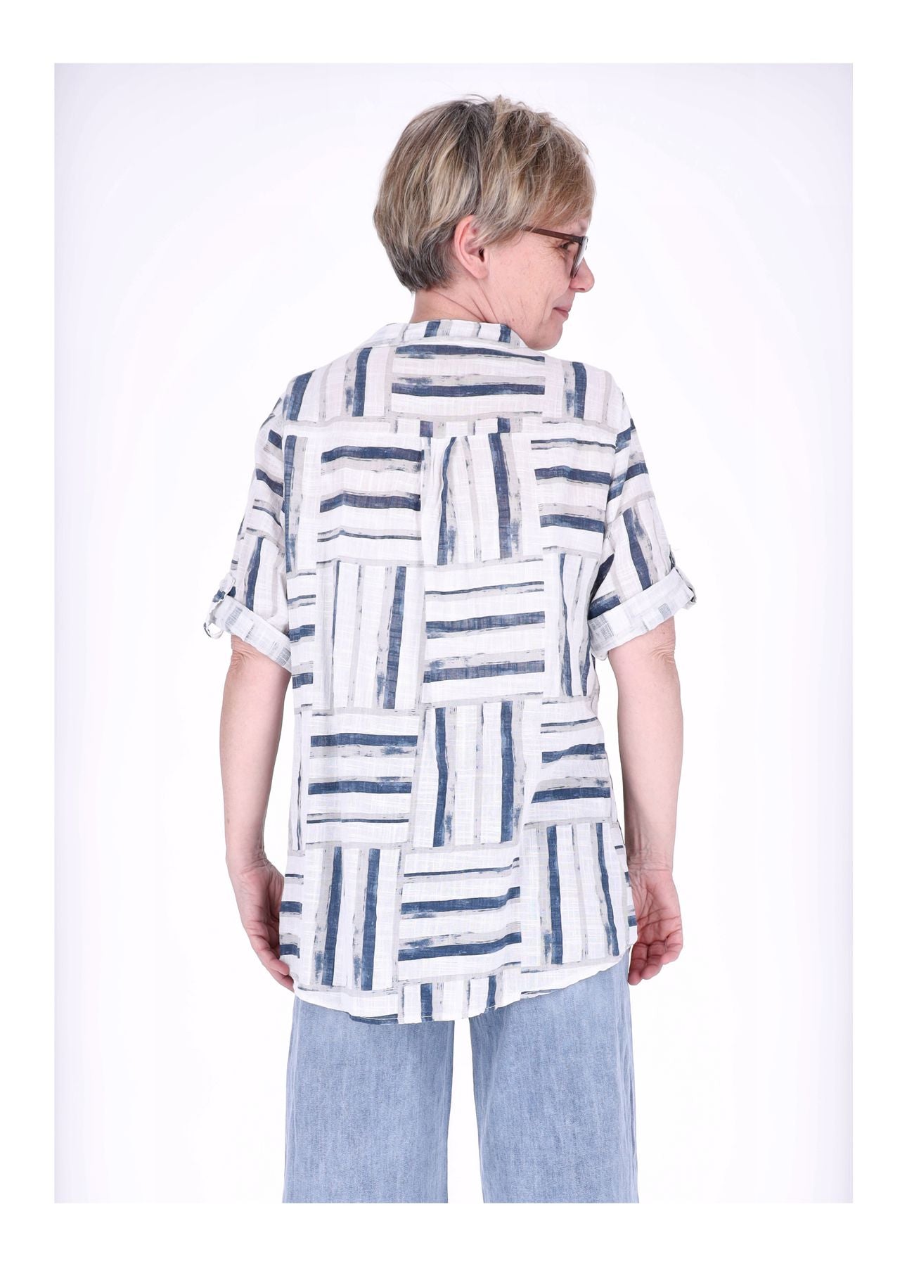 Blusenshirt Damen 3/4 Krempelarm AOP Streifen