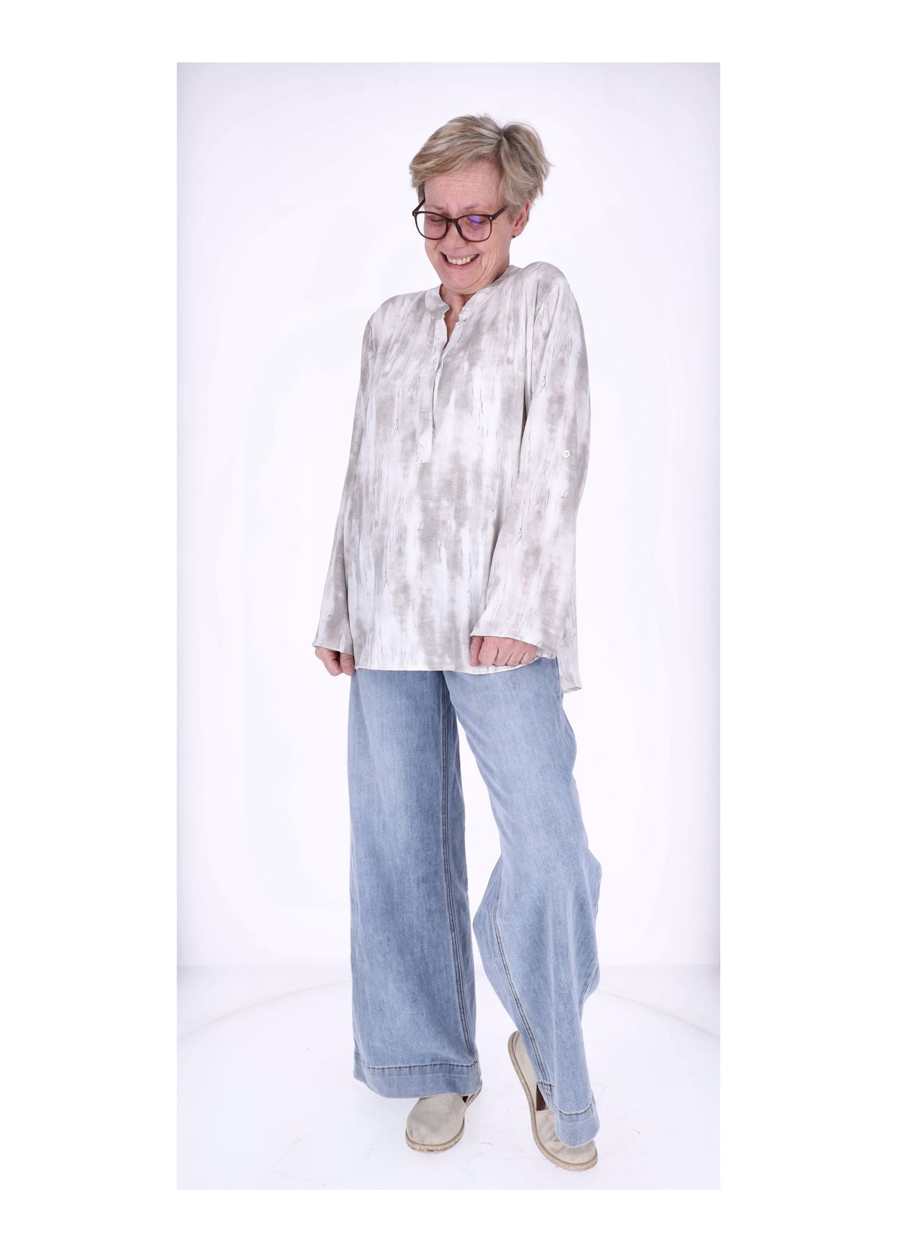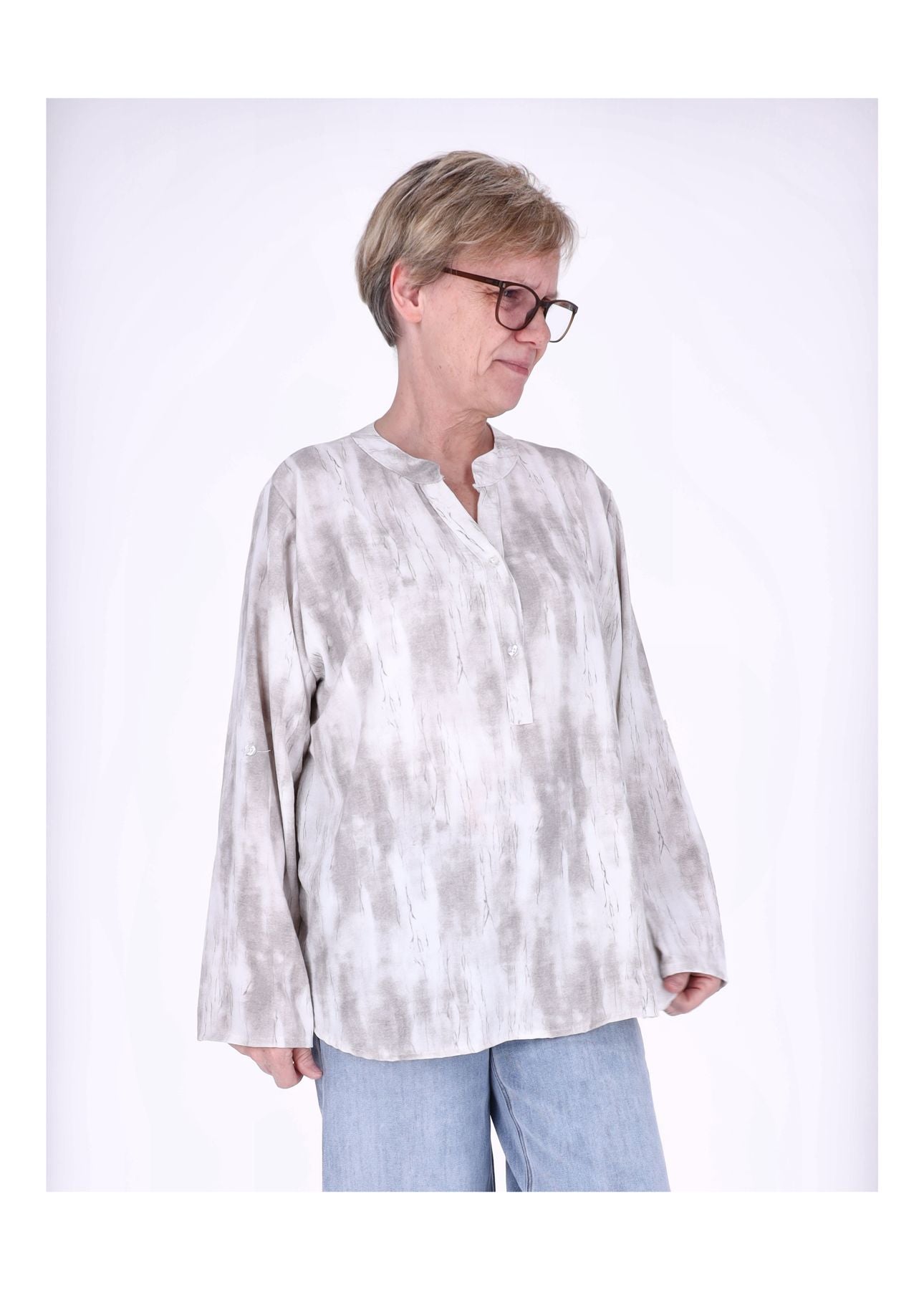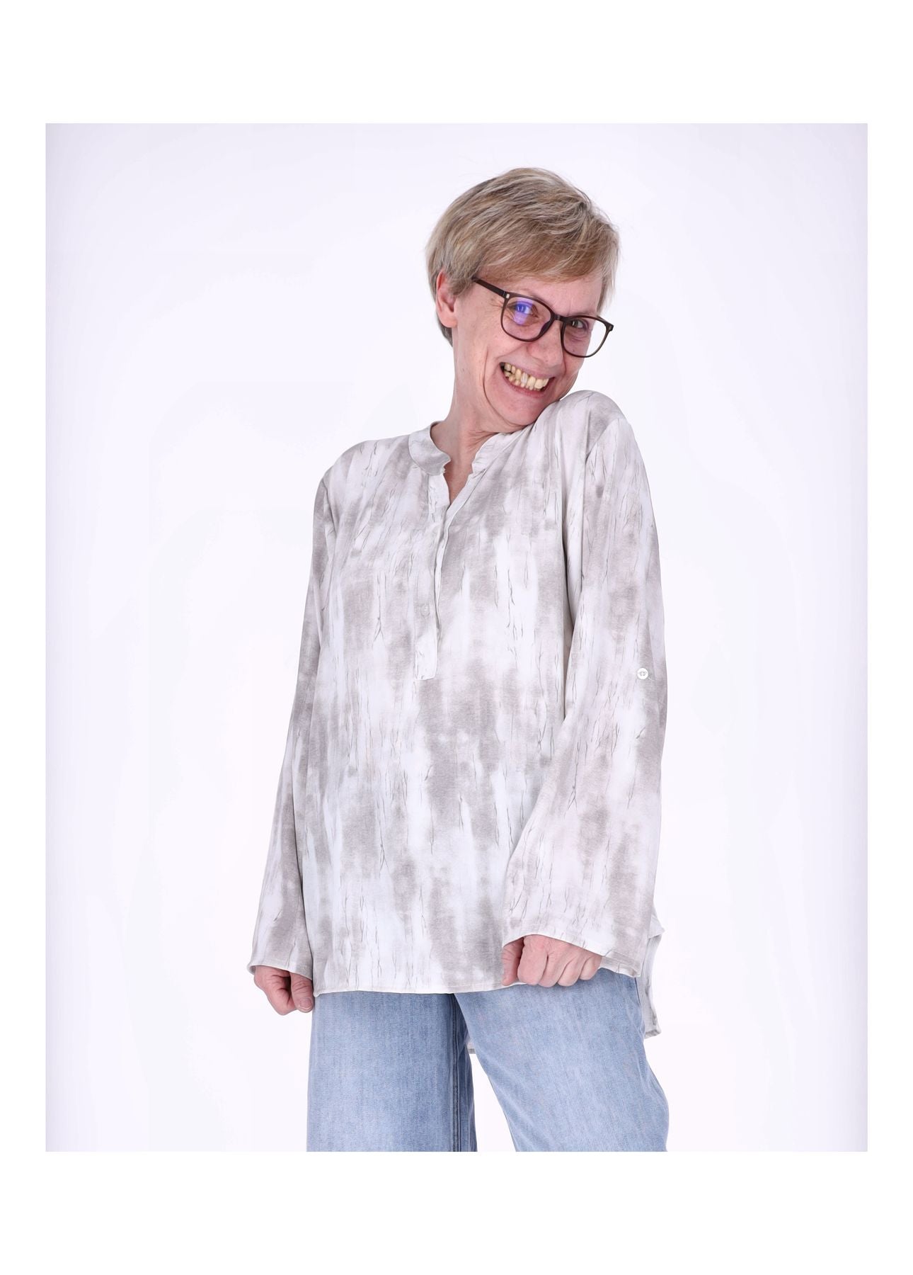 Der fließende Stoff fällt weich und sorgt für eine schmeichelnde Silhouette. Die verlängerte Rückenpartie (81 cm) bietet eine optimale Passform, während die Krempelarme flexibel tragbar sind – lässig hochgekrempelt oder klassisch lang.