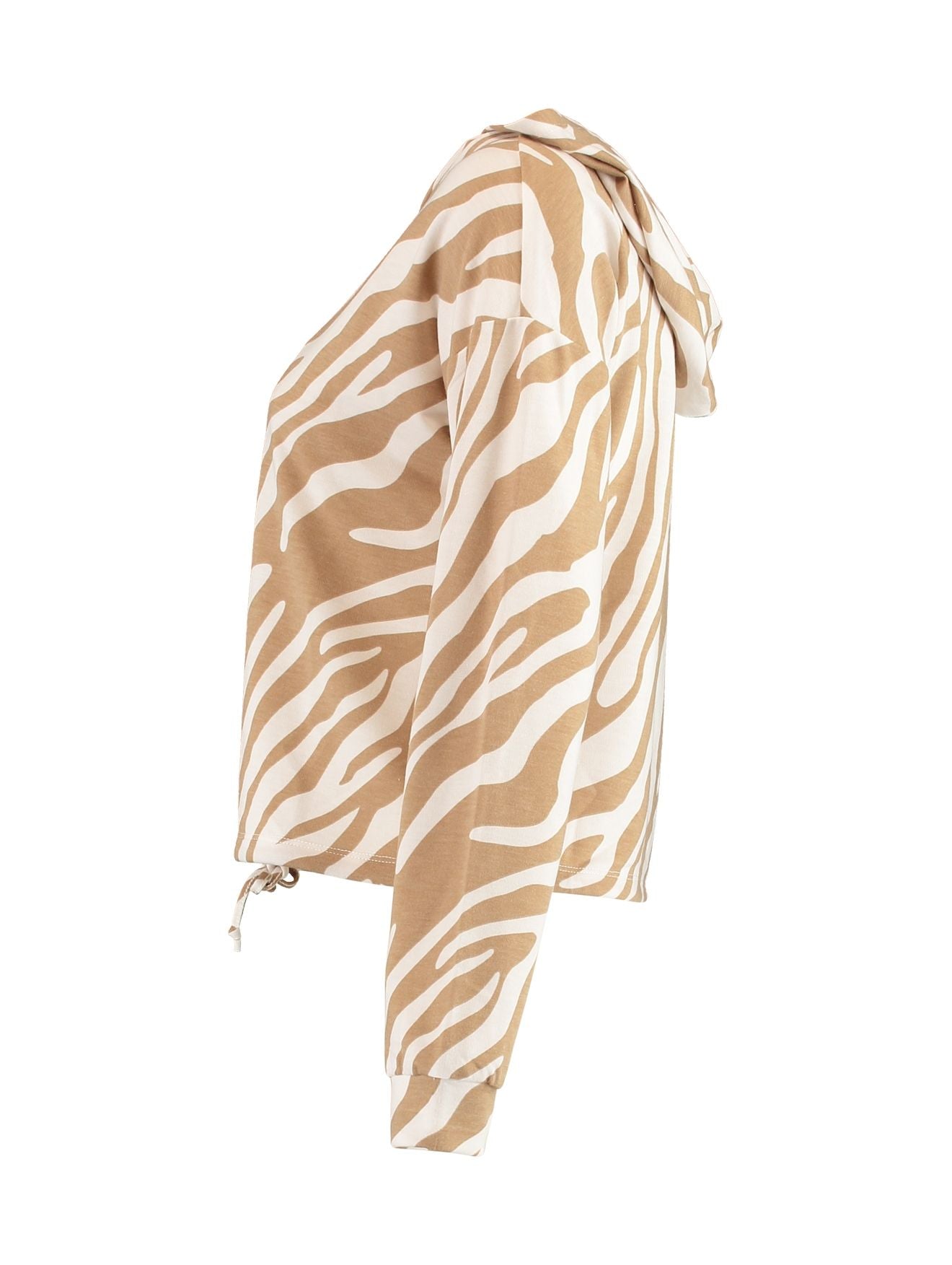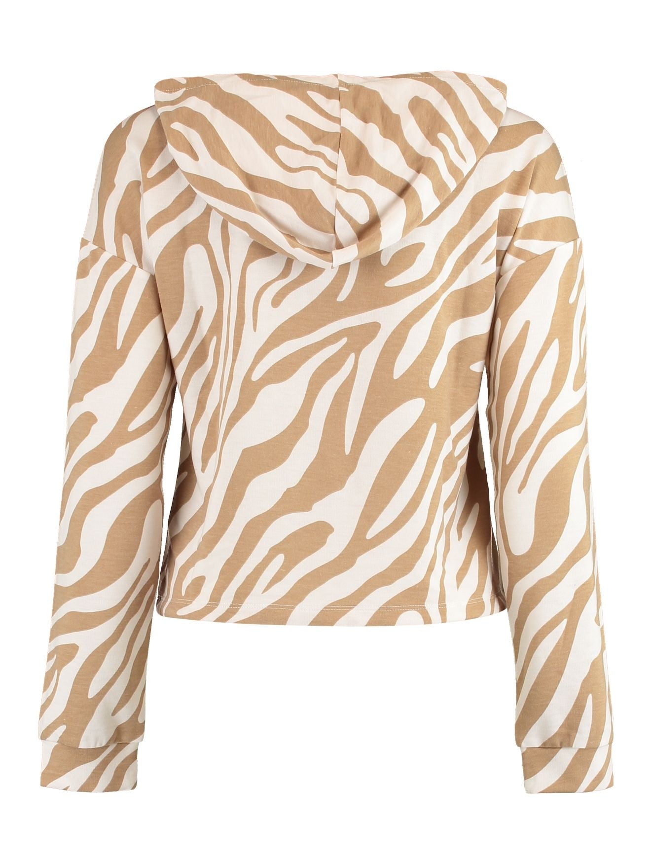 Kurzer Sweatshirtpulli mit Kaputze im all over Print und verstellbares Bündchen am Saum.