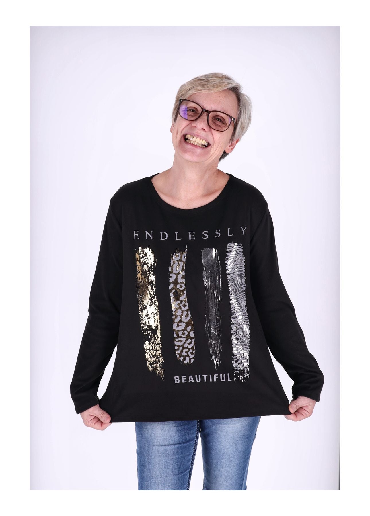 Damen-Shirt in Veloursoptik mit Frontprint – Weich & Stylisch