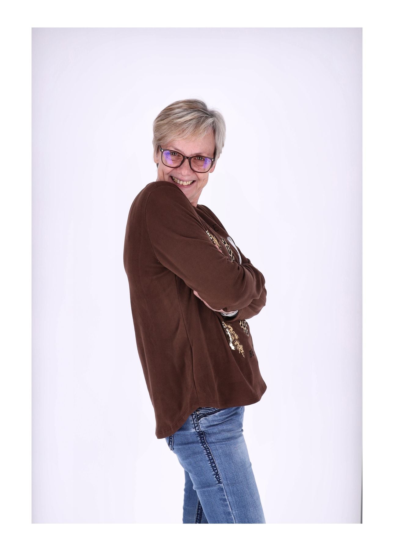 Damen-Shirt in Veloursoptik mit Frontprint – Weich & Stylisch
