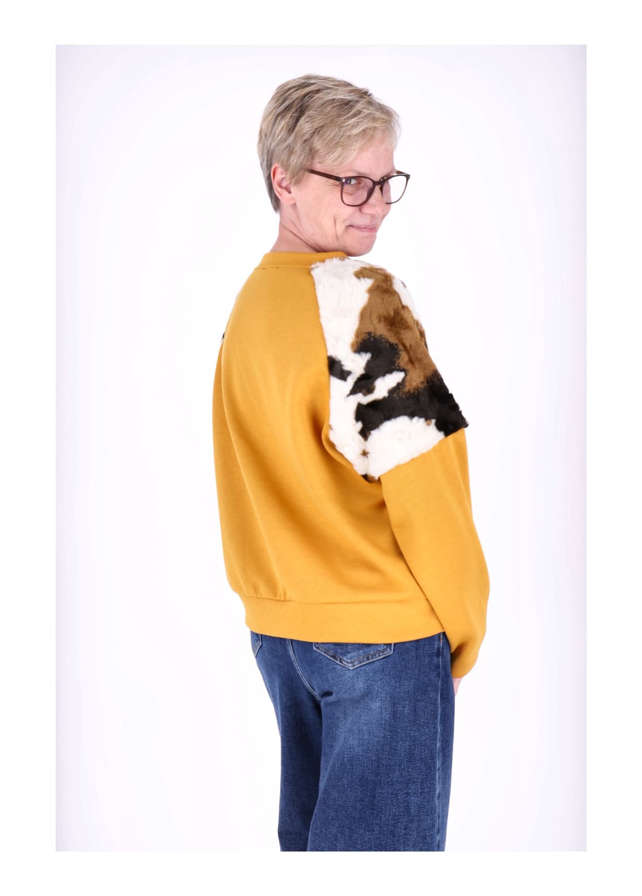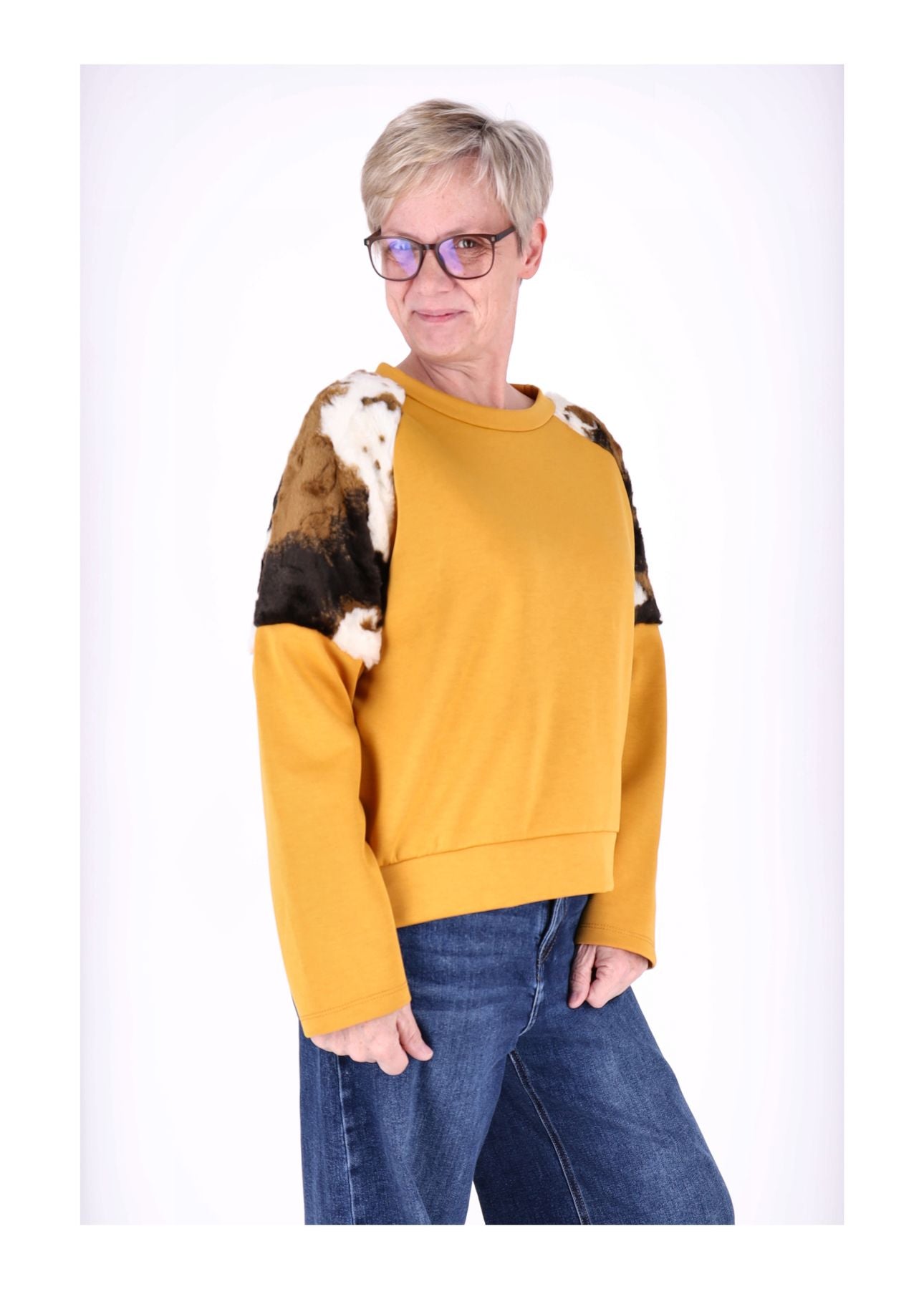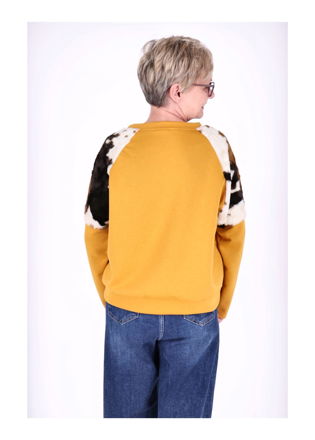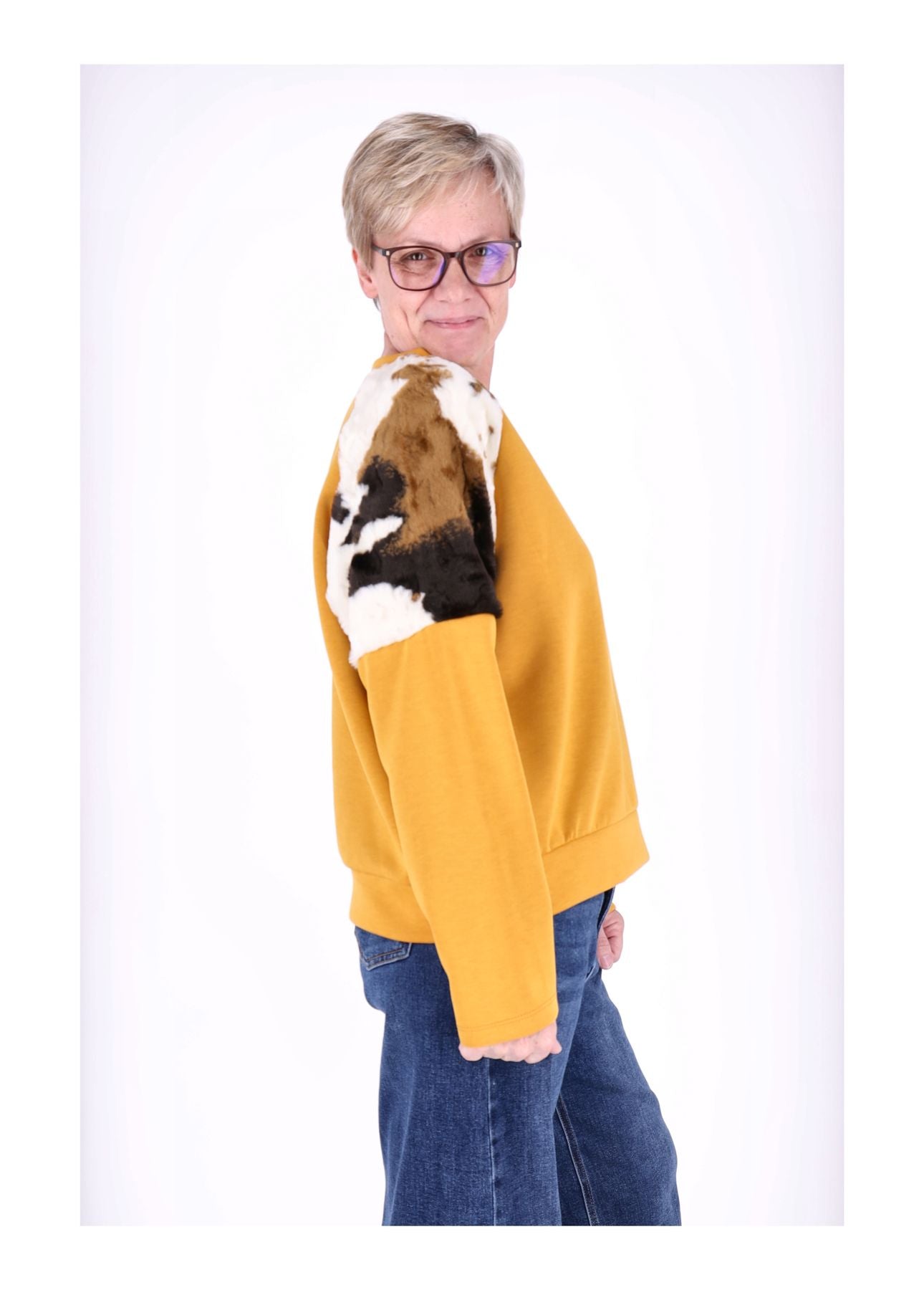 Lässig, stylisch und flauschig – Damen Sweatpullover mit Kuhfelleinsatz