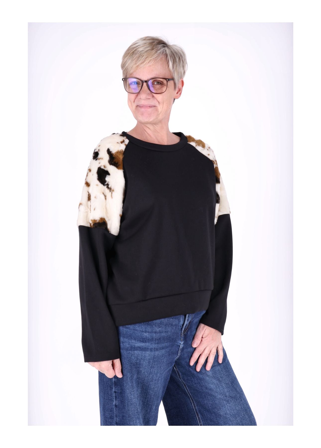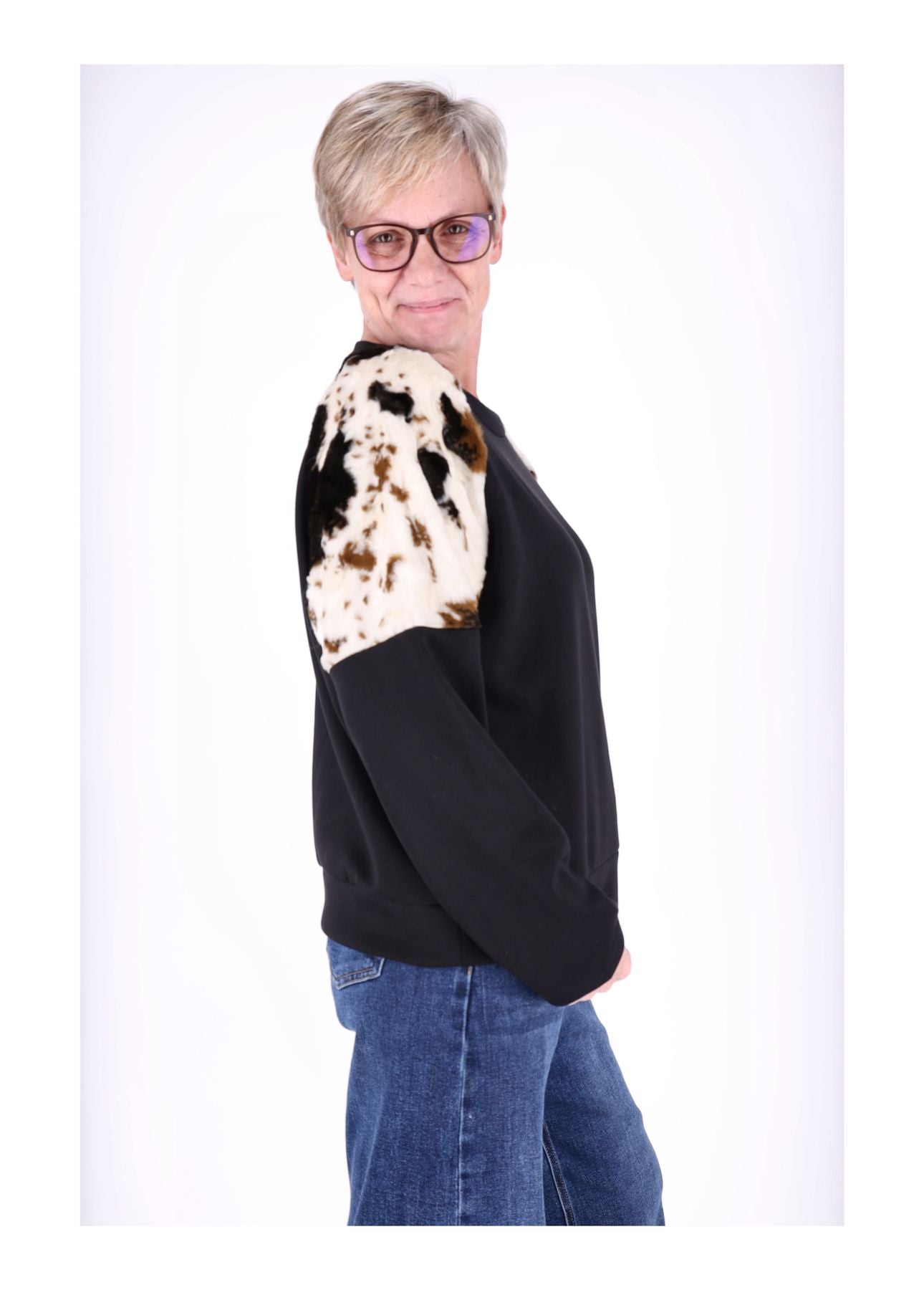 Lässig, stylisch und flauschig – Damen Sweatpullover mit Kuhfelleinsatz