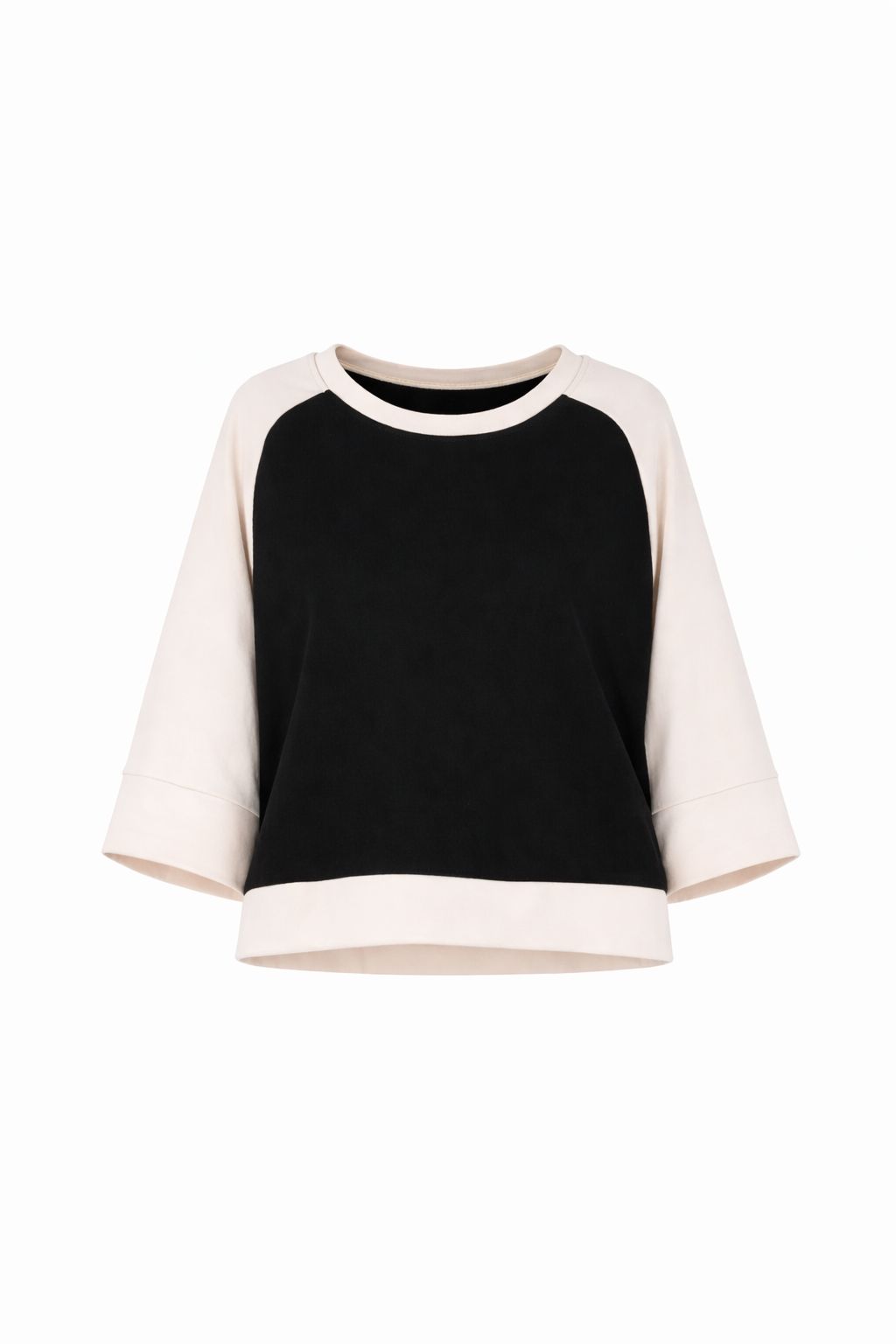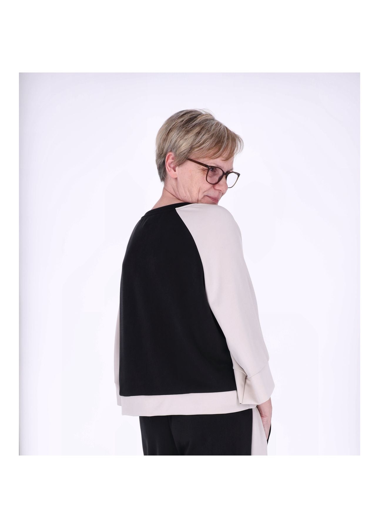 Dieses Sweatshirt für Damen überzeugt mit einem lässigen 3/4-Arm-Schnitt und hohem Tragekomfort. Der Rundhalsausschnitt sorgt für einen klassischen Look, während die kontrastfarbenen Ärmel einen modischen Akzent setzen. Perfekt als Set mit der passenden Hose aus unserem Shop.