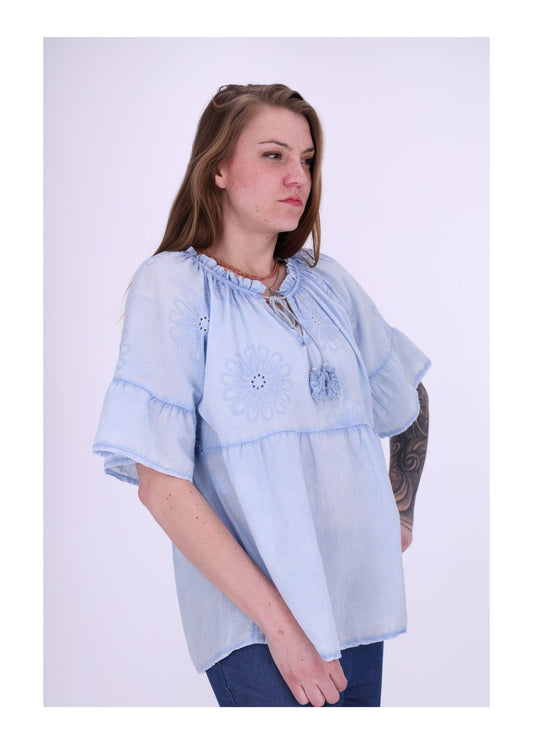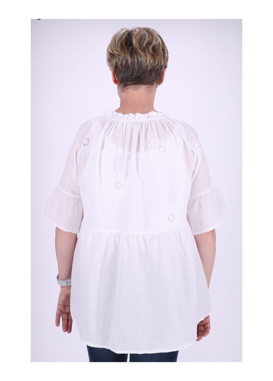 Damen DOB Bluse, 3/4 Ärmel mit Volant,