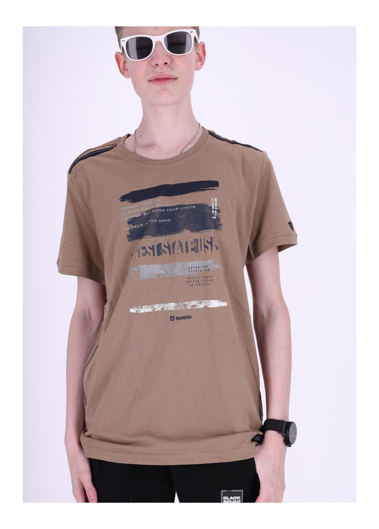 Dieses Herren T-Shirt kombiniert einen ausdrucksstarken Frontdruck mit farbiger Ziernaht an der Seite und einem Schmuckband auf den Schultern. Der Look wirkt sportlich-modern, während der angenehme Stoff für besten Tragekomfort sorgt.