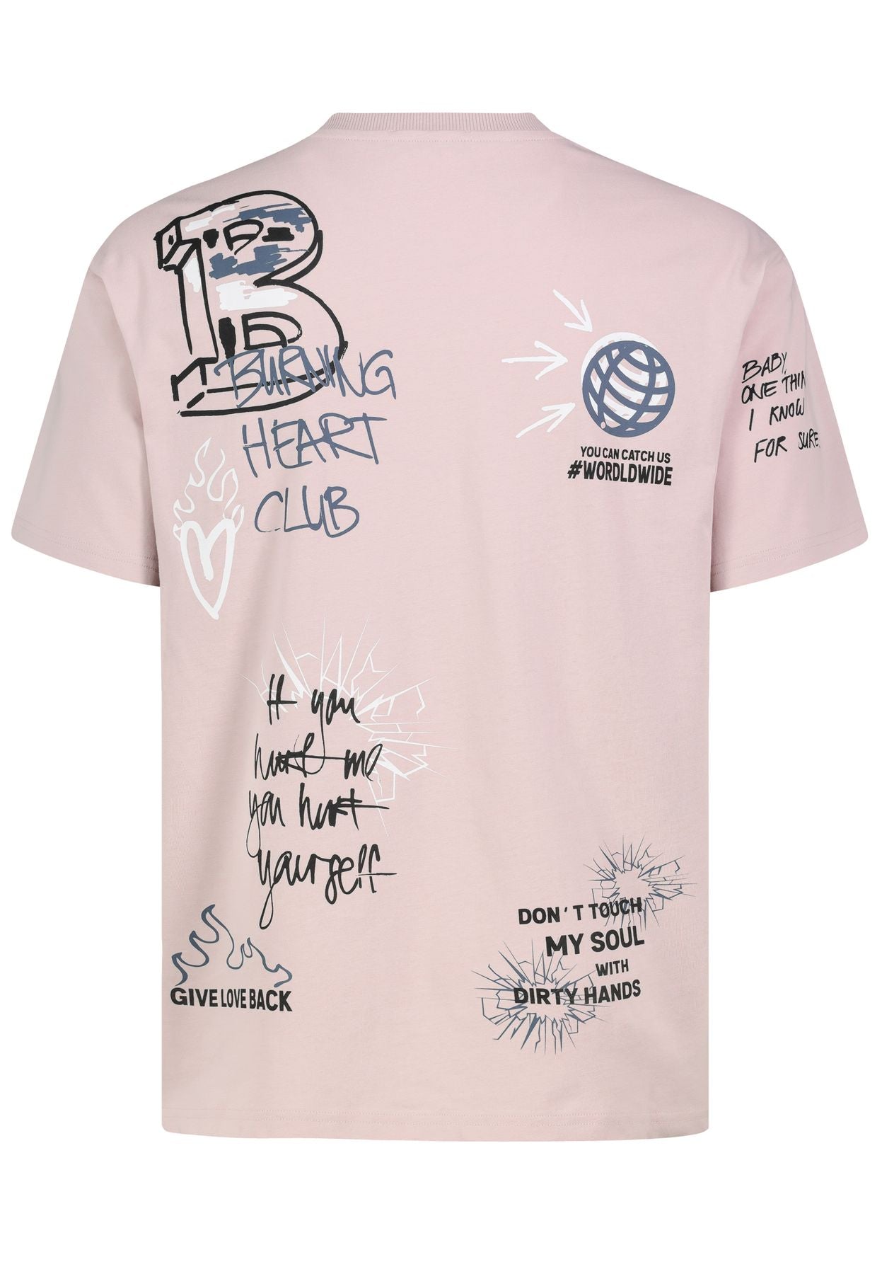 HAKA relaxed fit, kurzarm,Rundhals mit Rippblende, verschiedene Drucke auf Vorder-, Rückteil & Ärmel