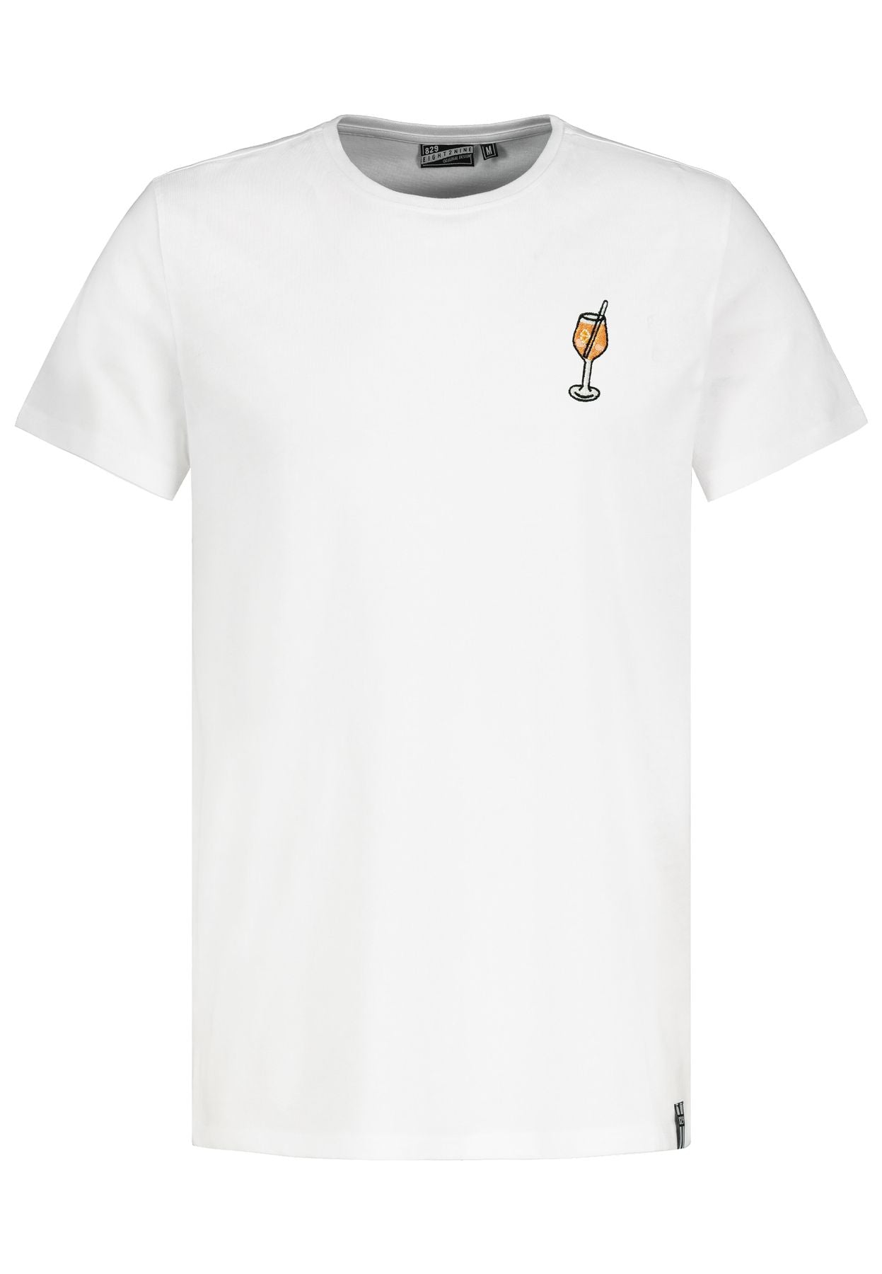 HAKA Shirt,kurzarm,Rundhals mitRib-Blende,verschiedene Sticke auf Brust"Aperol, Negroni, Bier"