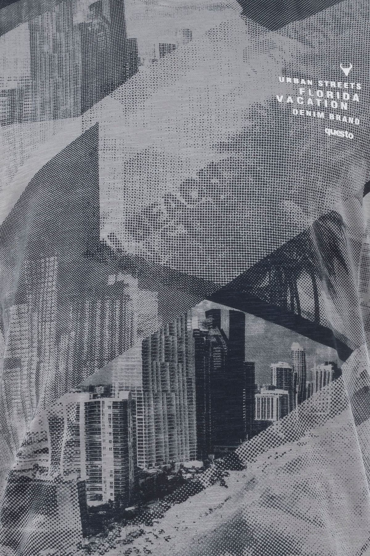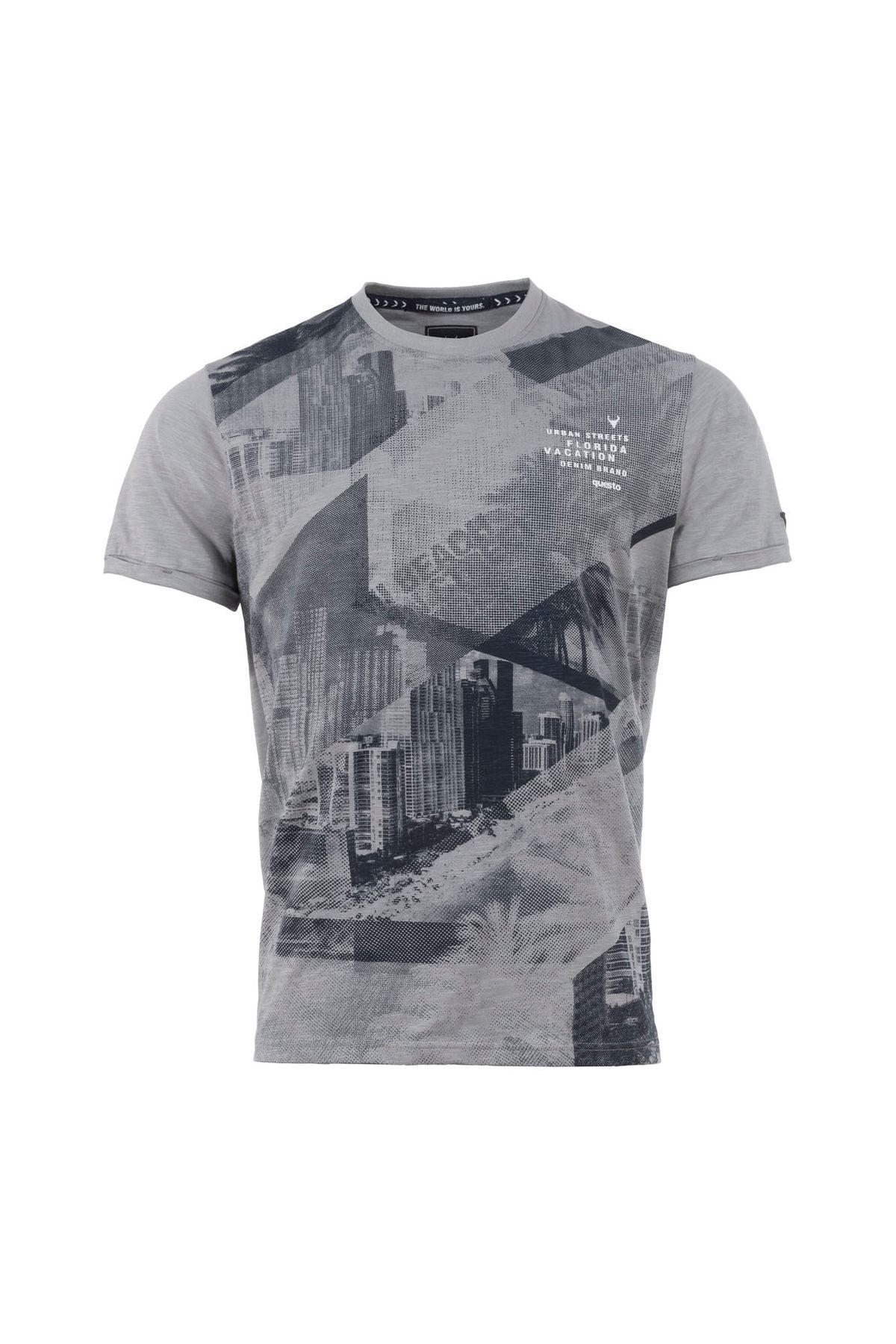 Rundhals T-Shirt in cooler Flammgarn-Optik. Dieser Look wird durch einen zusätzlichen Front-all-over-Print in Kontrastfarbe unterstützt.