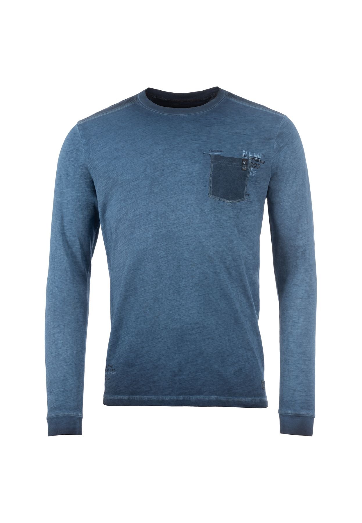 Langärmeliges Rundhalsshirt mit farblich abgesetzten Schultereinsätzen und einer dazu passend abgesetzten Brusttasche. Durch die Flammgarnware erhält das Shirt seinen besonders lässigen Look. Abgerundet wird dieser durch einen Lettering-Print an der Brusttasche.