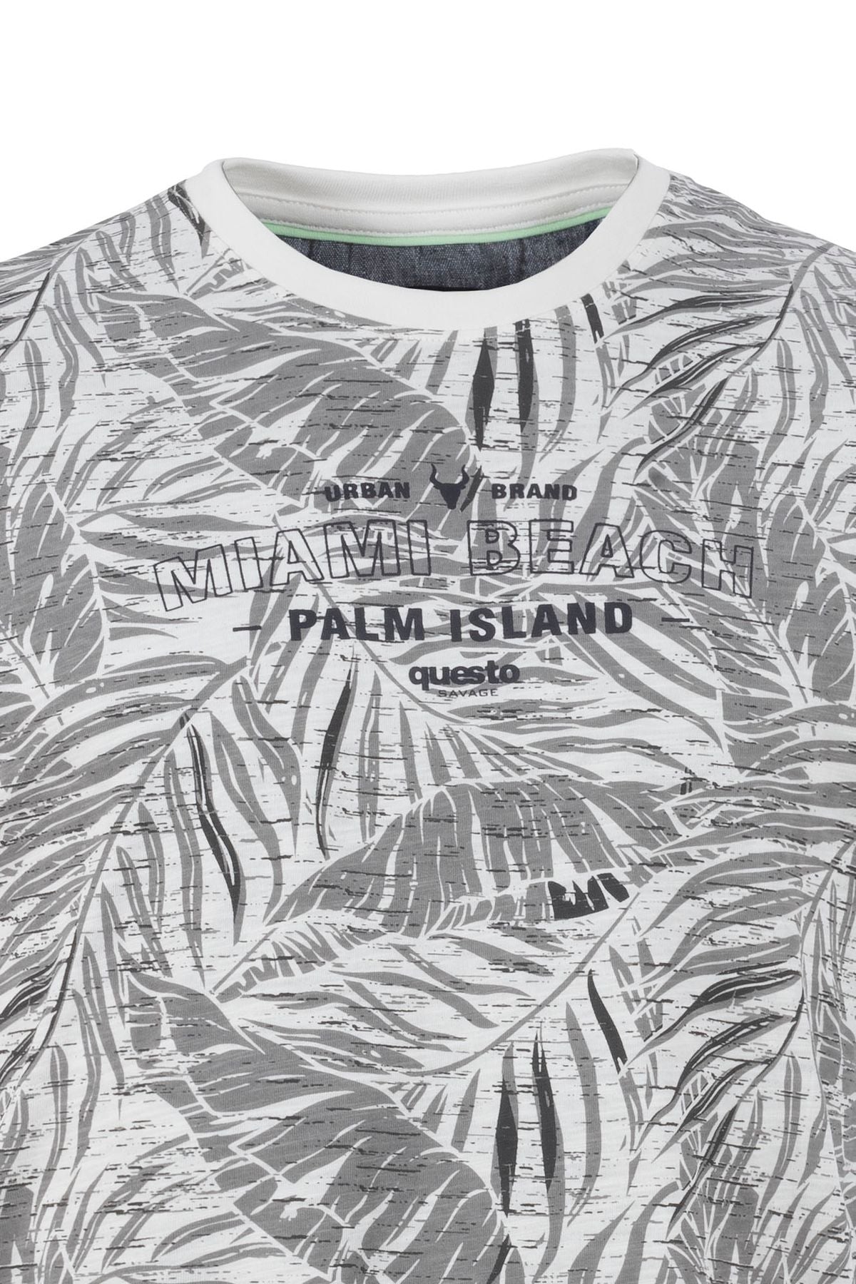 Dieses coole Rundhals T-Shirt aus Flammgarn ist mit einem All-Over-Palmen-Print versehen, welcher einen sommerlichen Look erzeugt. Zusätzlich wird die Brustpartie mit einem Letteringprint verziert.