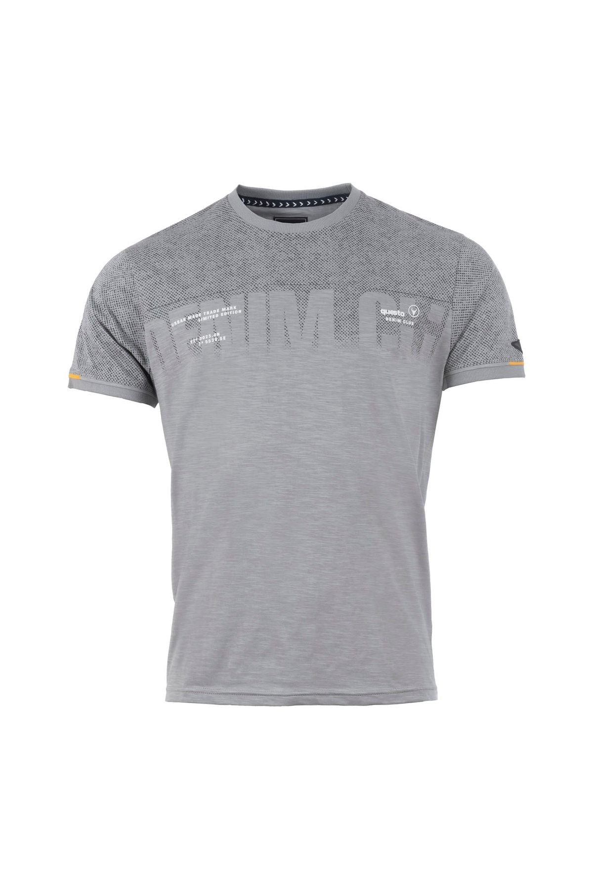 Modisches Rundhals T-Shirt. Ein besonderes Detail ist die bedruckte Schulter- und Ärmelpartie mit zusätzlich aufgedrucktem Lettering-Print.