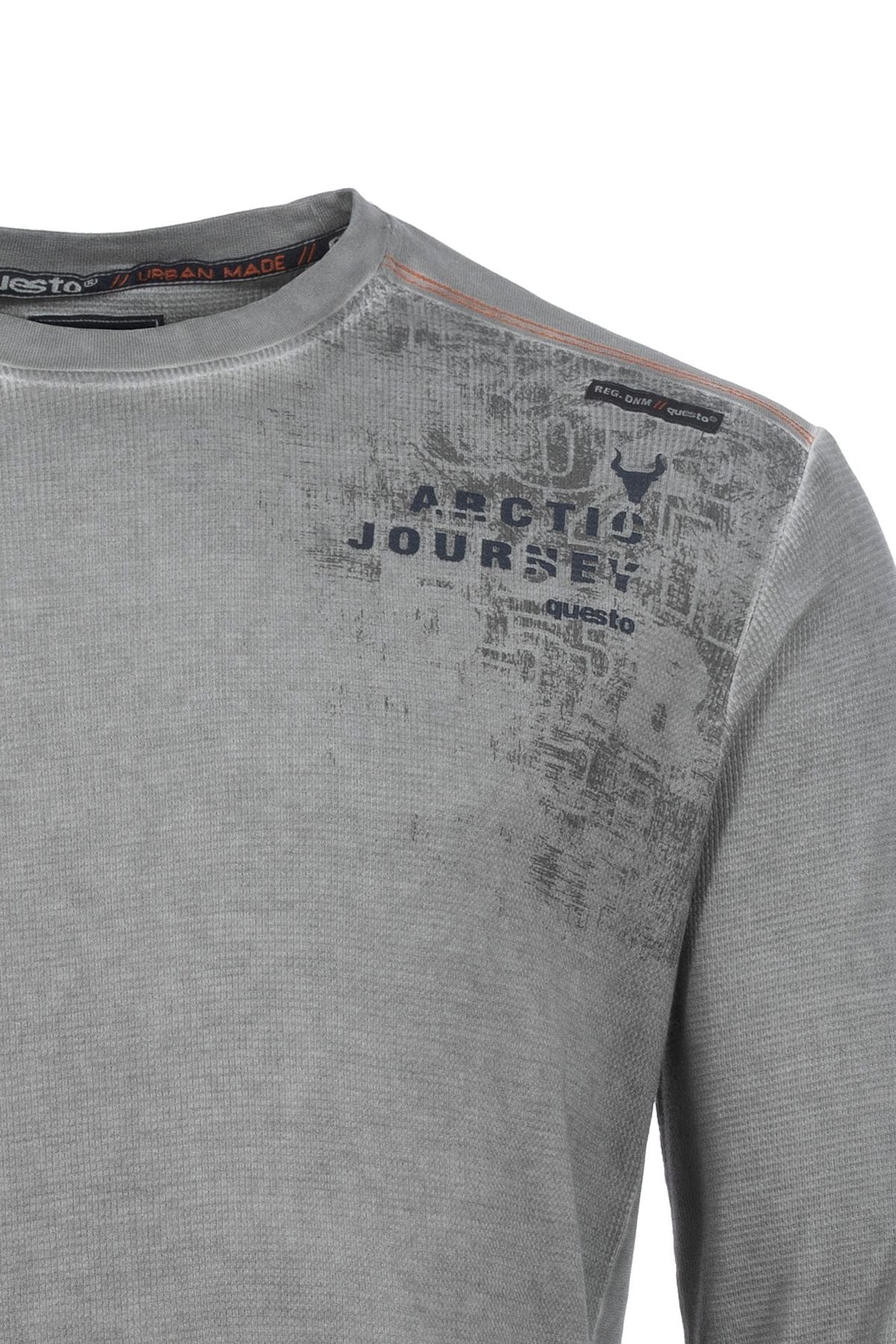 Dieses Rundhals-Sweatshirt vereint coolen Streetstyle mit maximalem Komfort. Die moderne Waffelstruktur verleiht dem Stoff eine spannende Tiefe und einen hochwertigen Look, der sofort ins Auge fällt. Der markante Schulterprint setzt ein lässiges Statement und transportiert den typischen Questo-Vibe – entspannt, modern und absolut alltagstauglich.