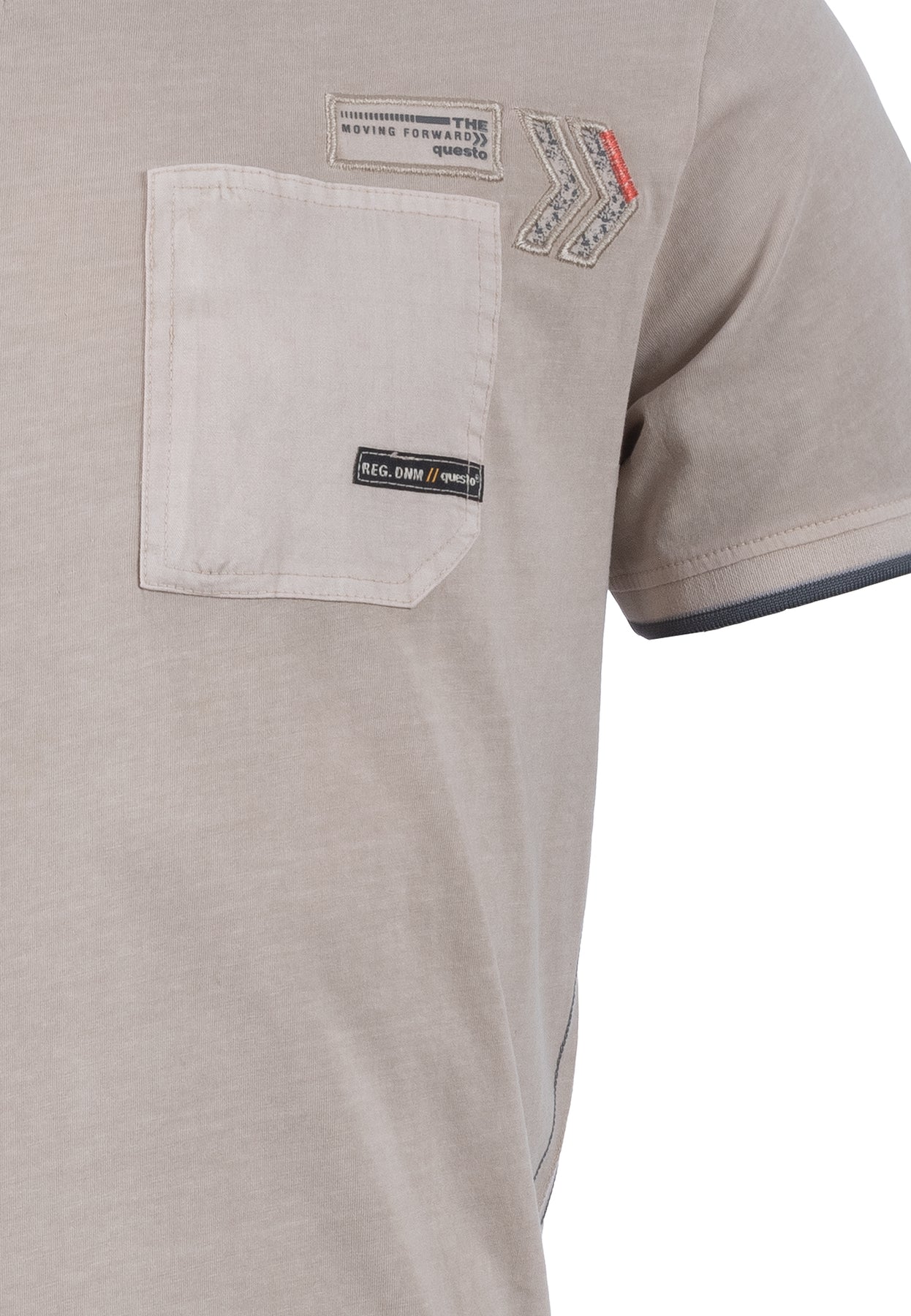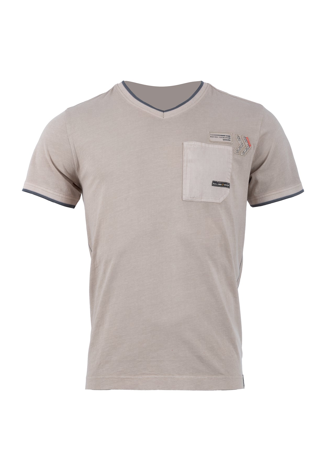 Schlichtes Casual T-Shirt mit Brustasche auf der linken Seite. Ein weiteres Detail sind dezente, farbliche Akzente am Ärmelbund.