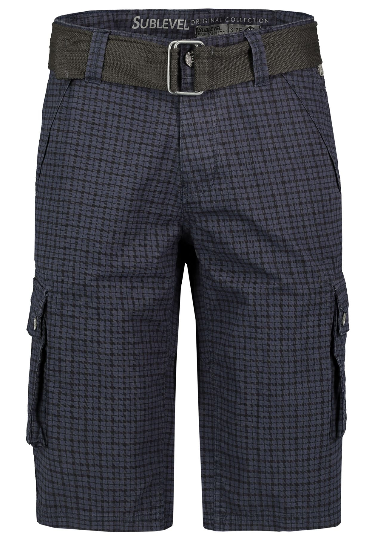 HAKA Cargo Short,Karo Druck, schräger Tascheneingriff, Teilungsnaht hinten, Blasebalgtaschen anSeite, Pattentaschen hinten, Gürtel