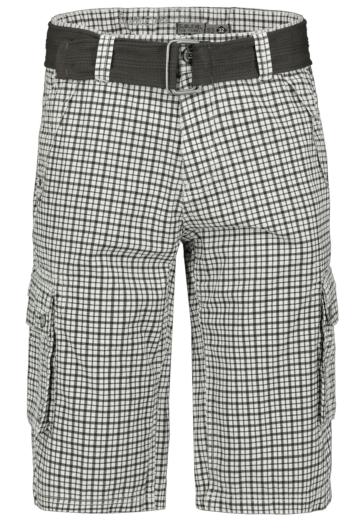 HAKA Cargo Short,Karo Druck, schräger Tascheneingriff, Teilungsnaht hinten, Blasebalgtaschen anSeite, Pattentaschen hinten, Gürtel