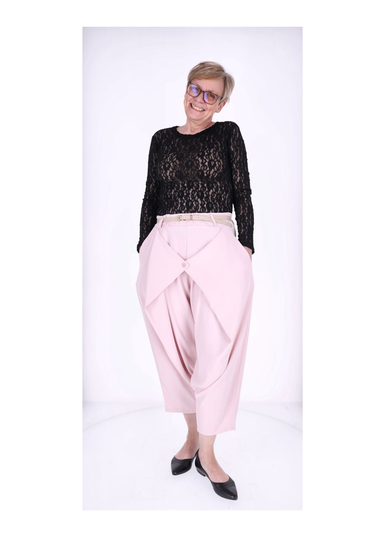 Damen Hose Punto Roma – mit Drapierungen & Gürtel