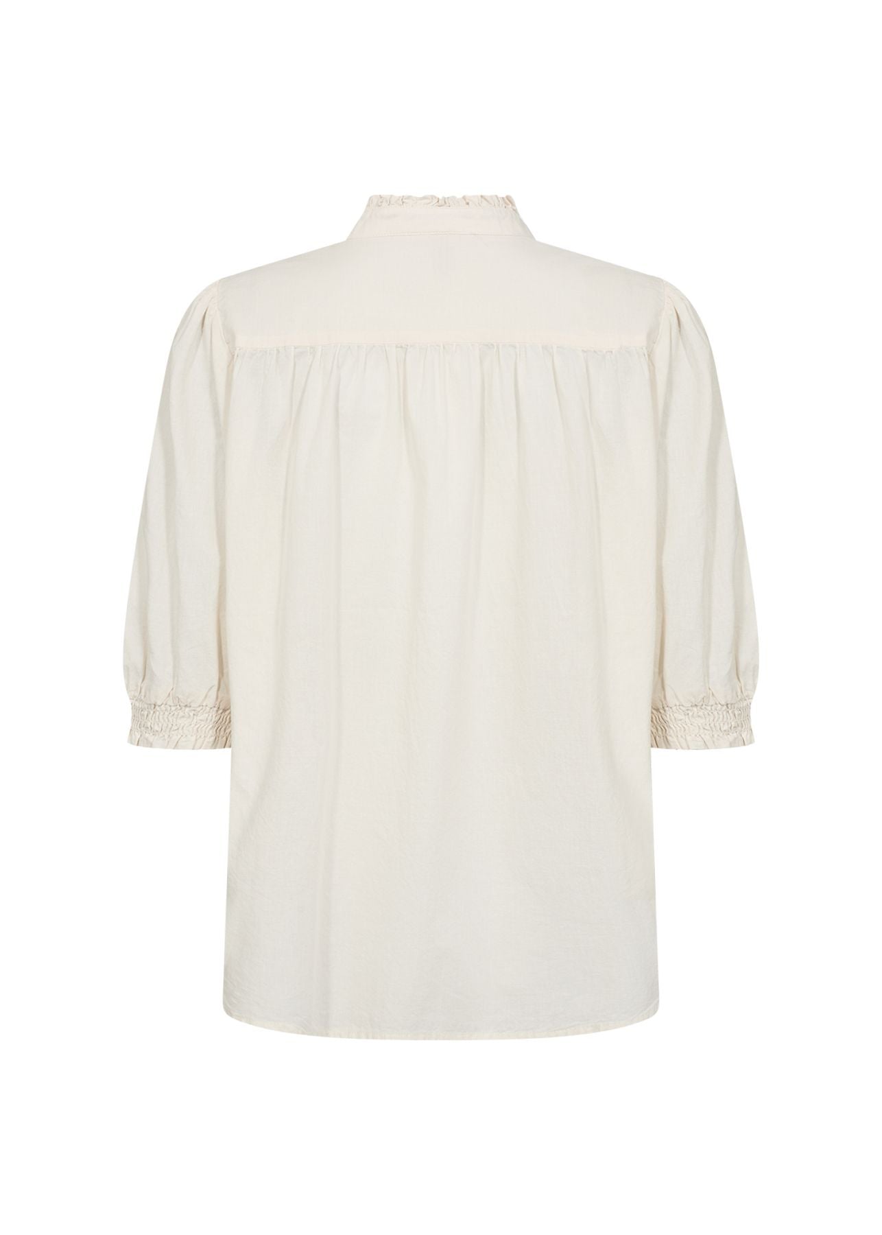 SC-CALISTE 13 ist ein Hemd aus 100% Bio-Baumwolle. Das Hemd hat einen hohen Kragen mit Rüschen, eine Knopfleiste und 3/4-lange Ärmel mit elastischen Bündchen. Es lässt sich sowohl mit Anzughosen als auch mit legeren Jeans kombinieren und eignet sich für eine Vielzahl von Looks.