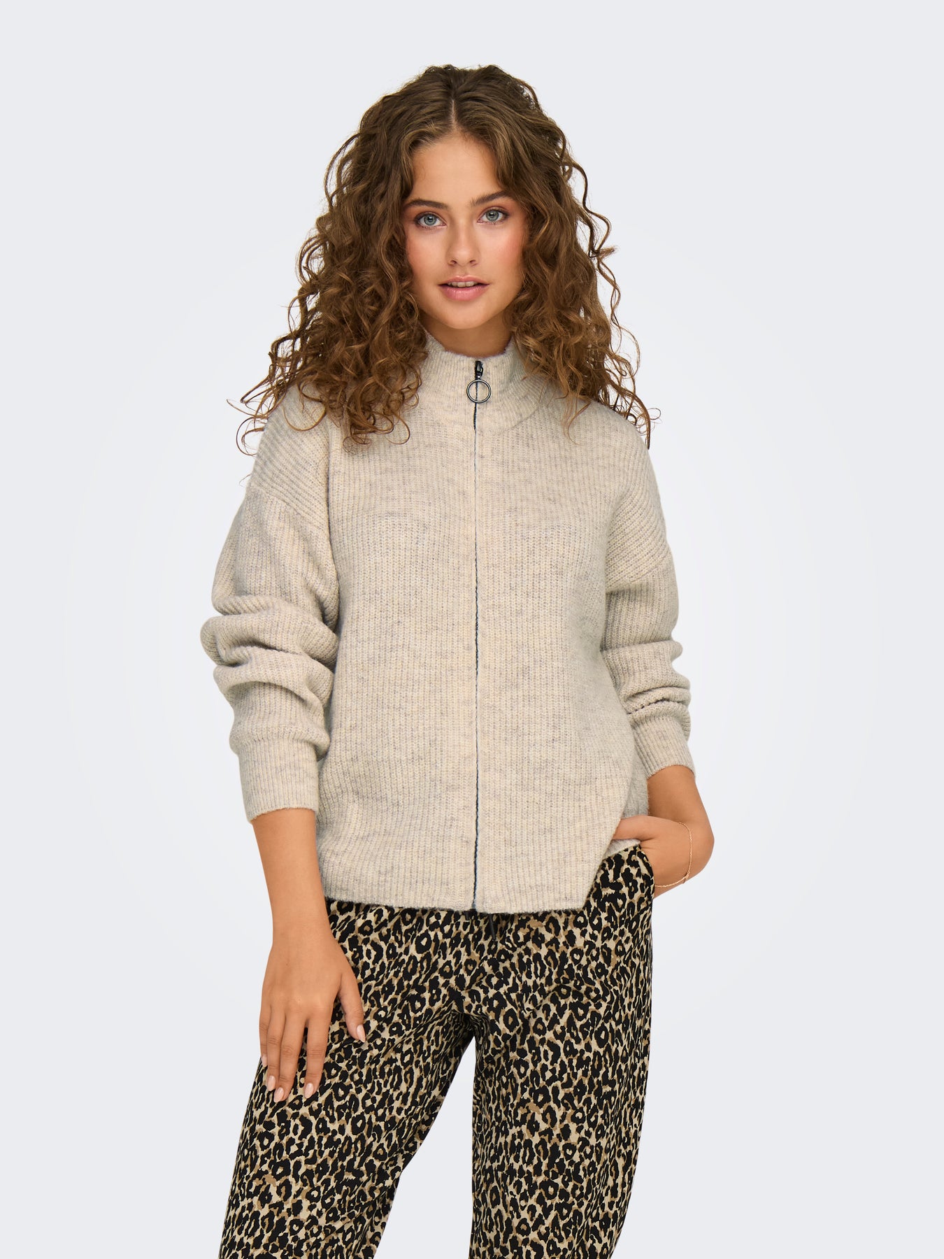 Vervollständige deinen Look mit einem gestrickten Cardigan – dem perfekten Must-have für Wintertage und Sommerabende. - Produkttyp : Strickjacke - Hals : Hoch geschlossen - Ärmel : Langarm - Ärmel : Ballonärmel - Manschetten : Gerippte Ärmelbündchen - Verschluss : Reißverschluss - Passform : Normal geschnitten