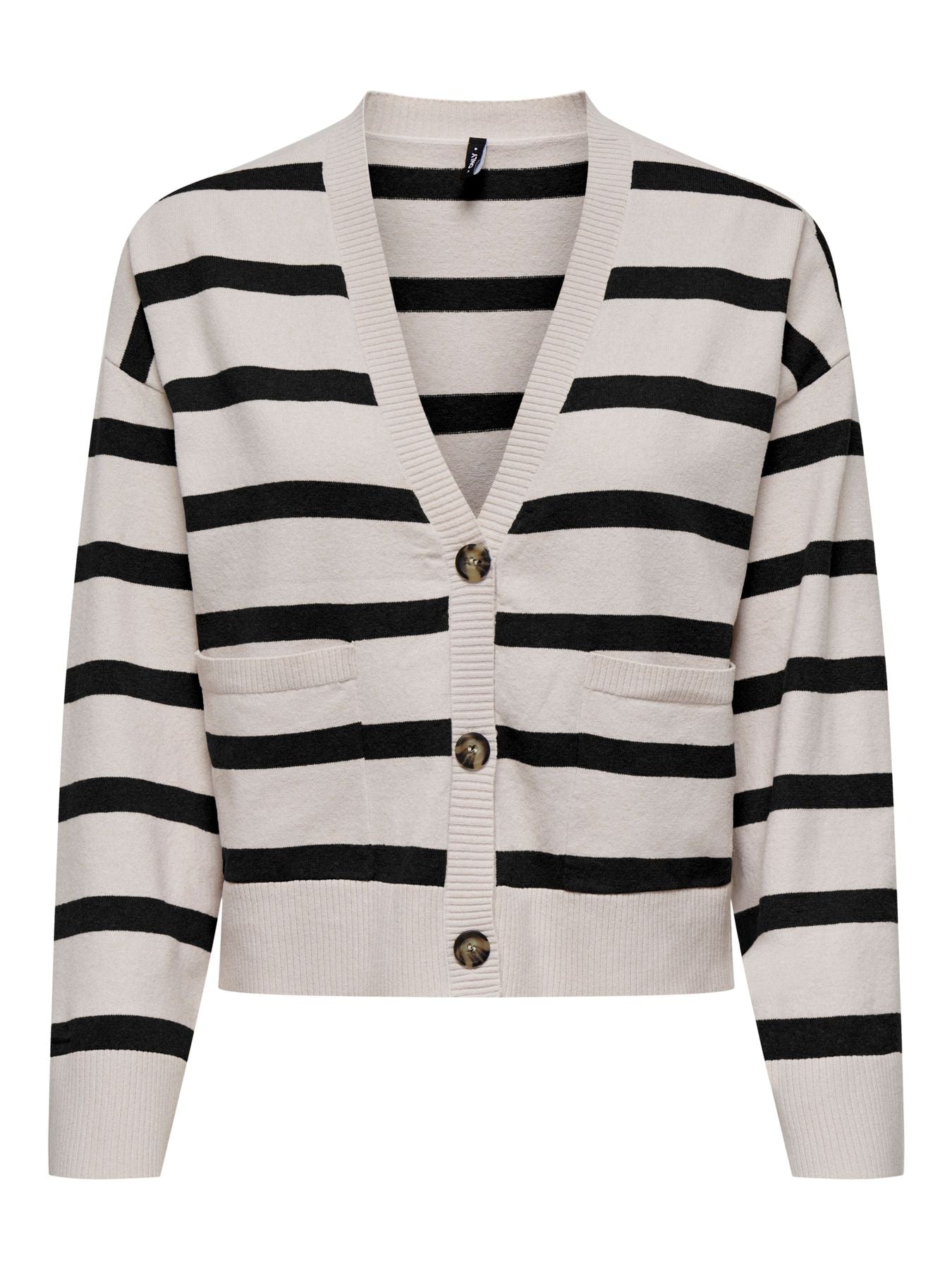 Vervollständige deinen Look mit einem zeitlosen, femininen Strickteil, das weich und warm ist. - Produkttyp : Strickjacke - Hals : V-Ausschnitt - Ärmel : Langarm - Ärmel : Tief angesetzte Schulter - Verschluss : Knopfleiste - Länge/Größe : Kurz - Passform : Normal geschnitten