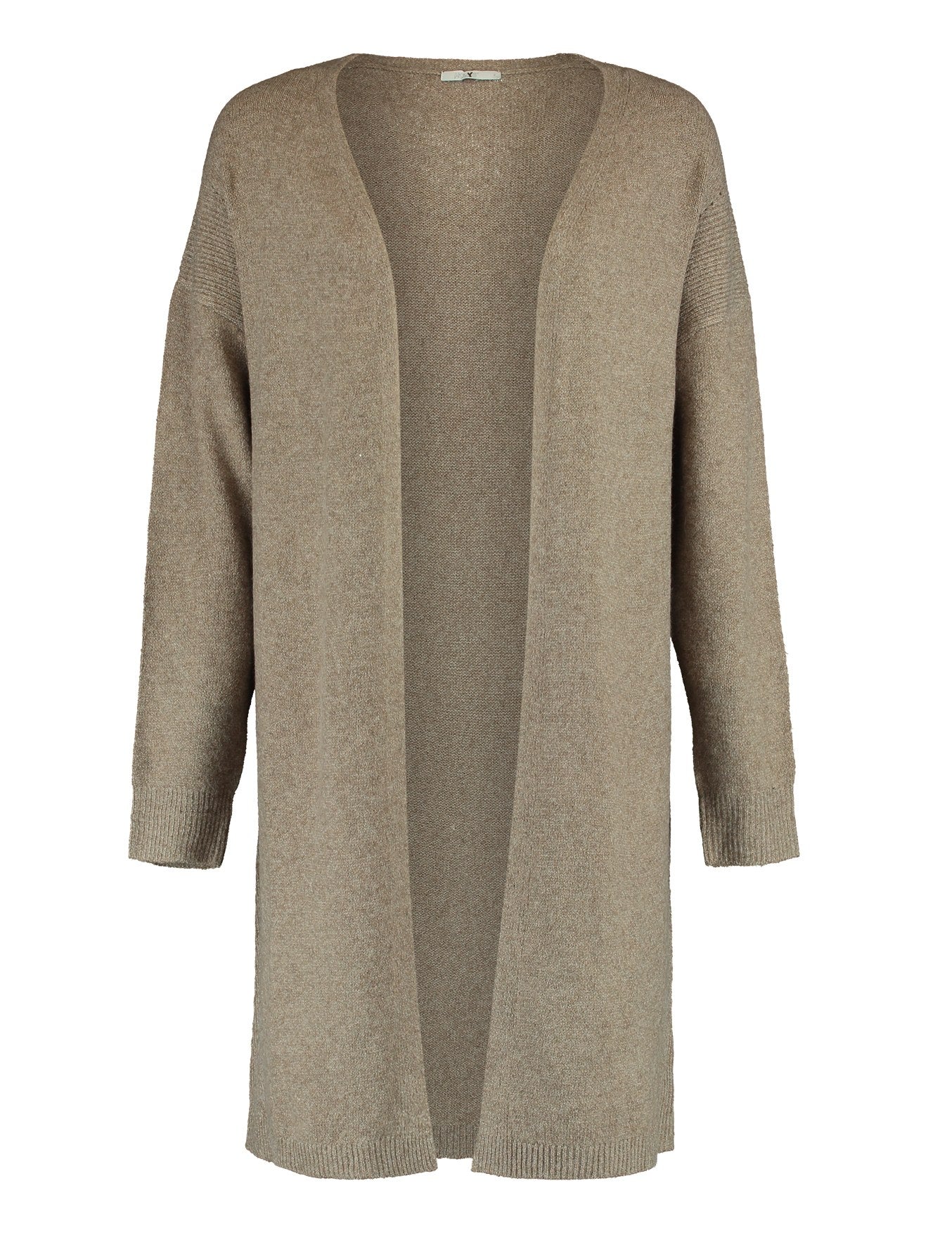 Strickjacke mittlere Länge in weicher Qualität, wird offen und ohne Verschluss getragen.
